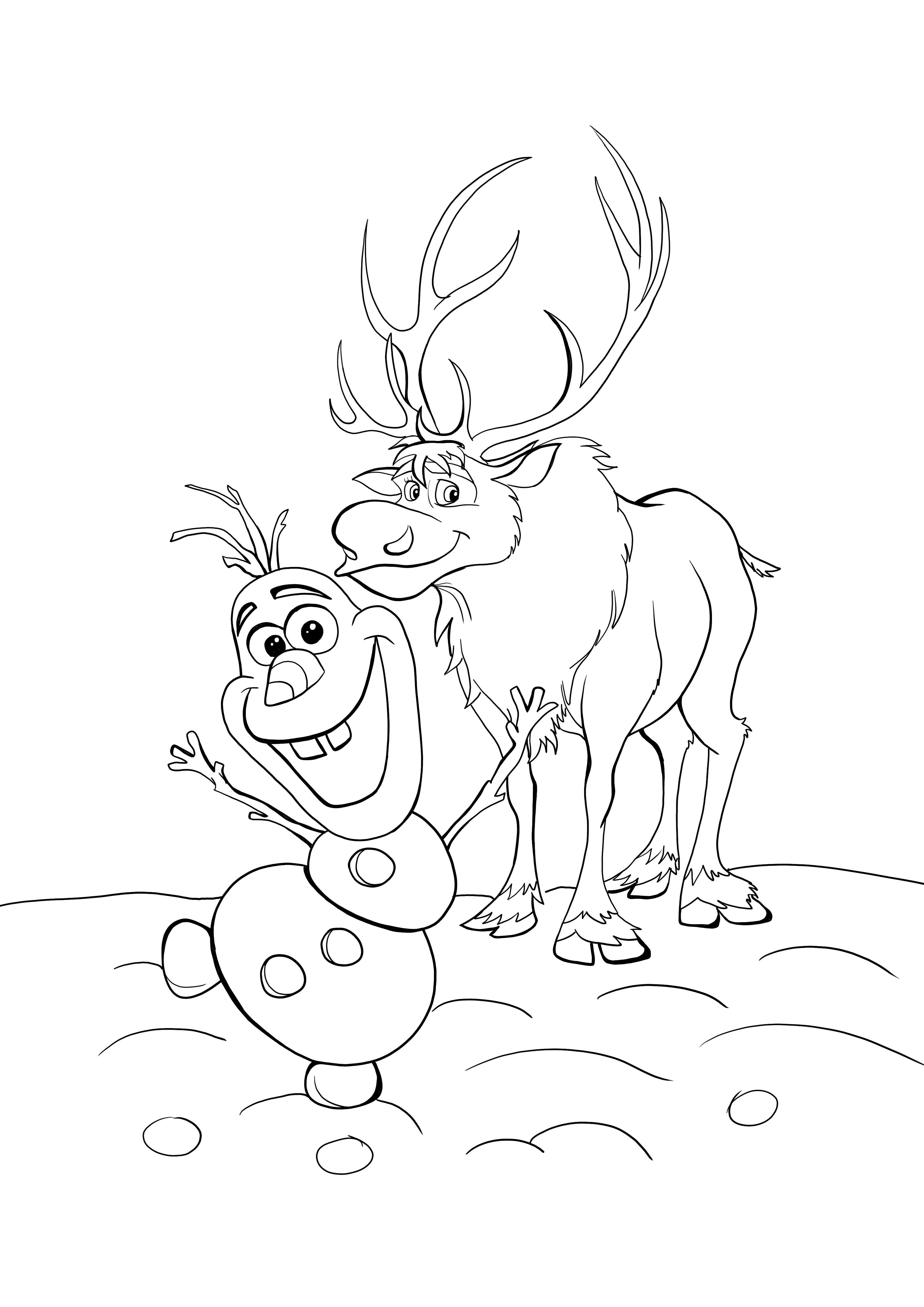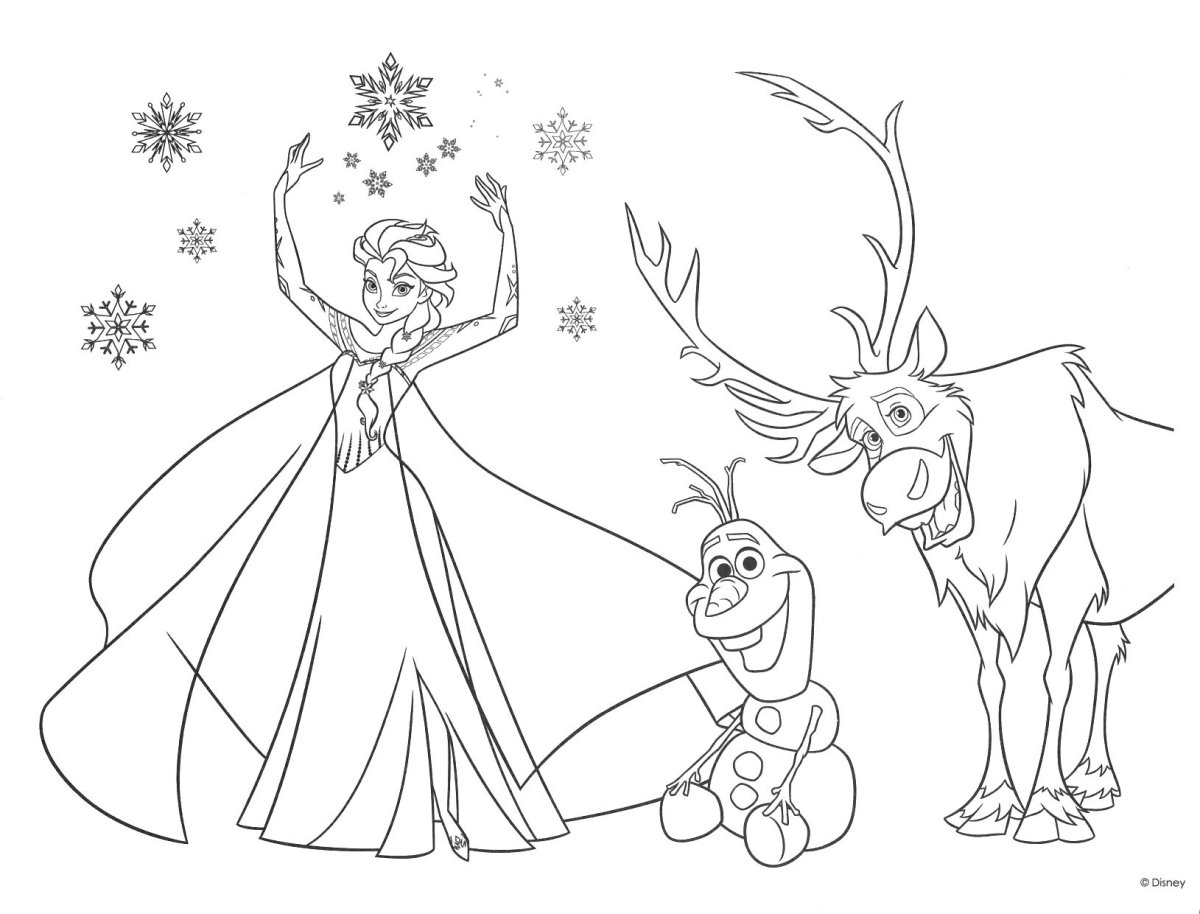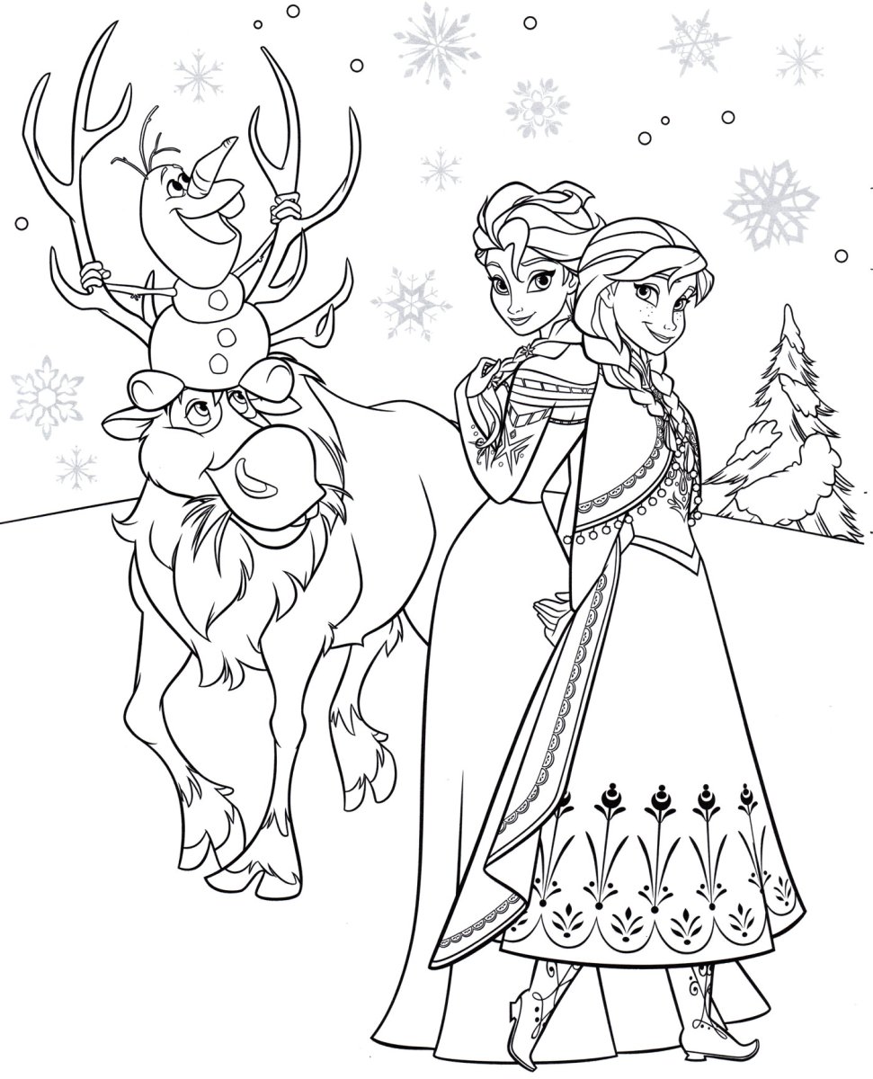 Раскраска Эльза Анна Кристофф Свен и Олаф