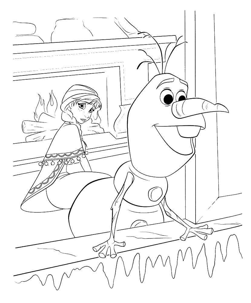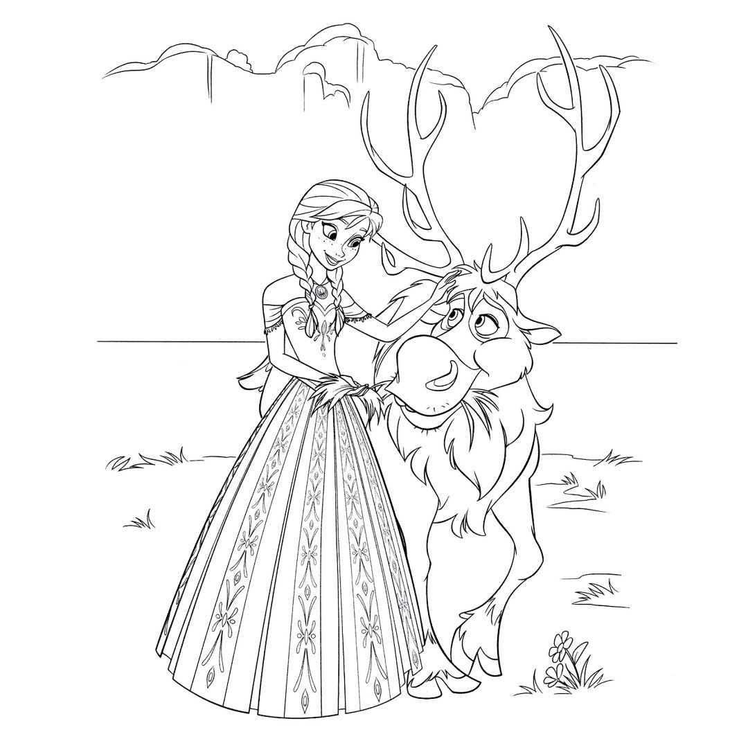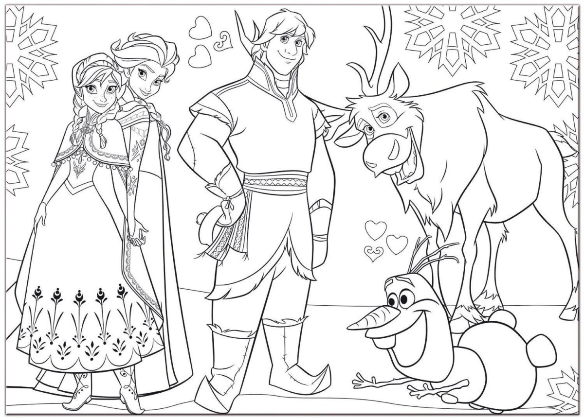 Раскраска Эльза Анна Кристофф Свен и Олаф
