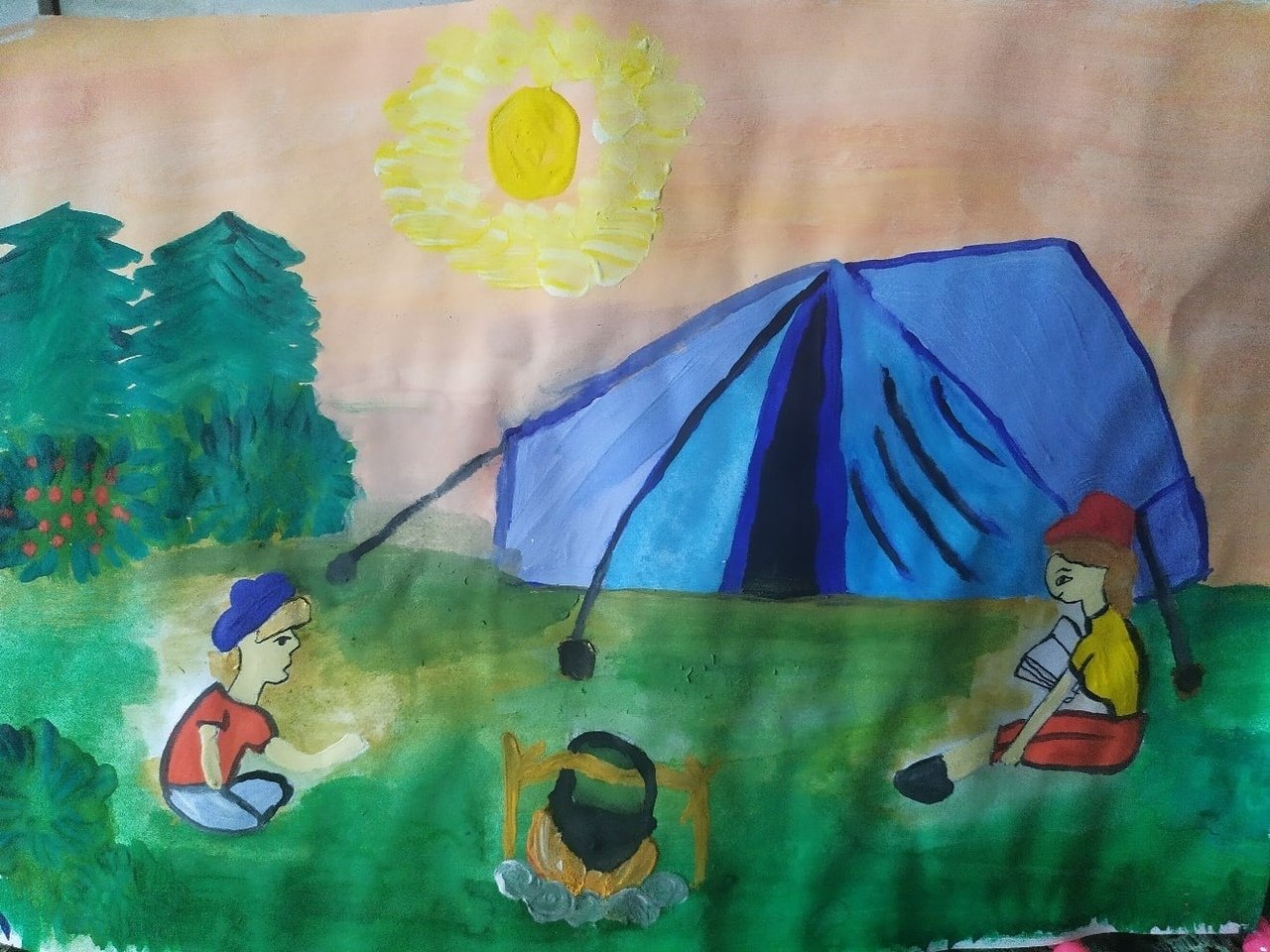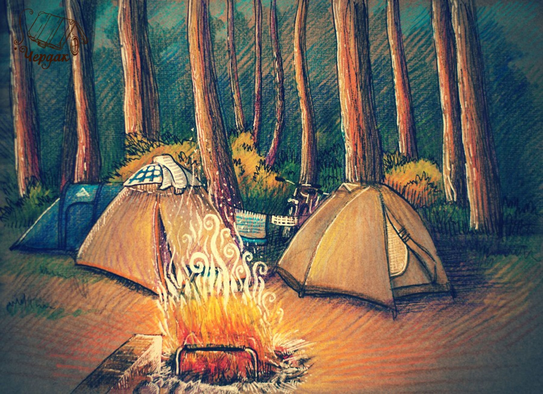 Рисунки с изображением палаток и костра