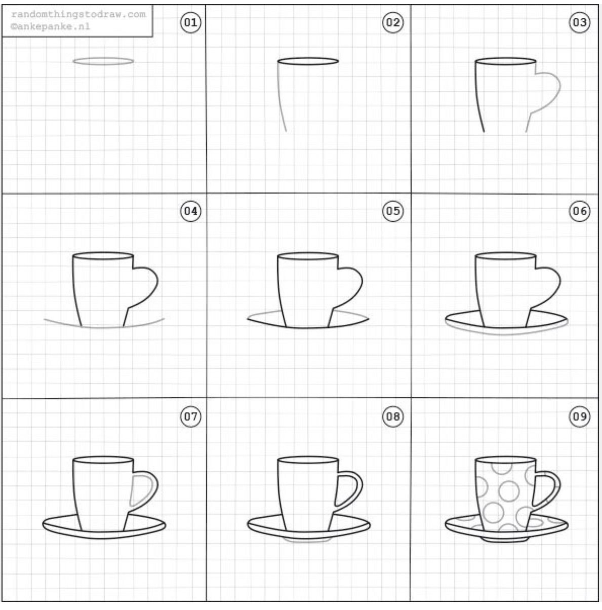 Этапы рисования чашки