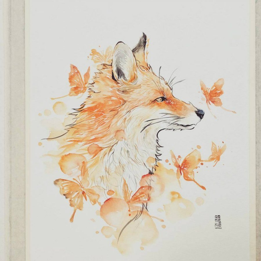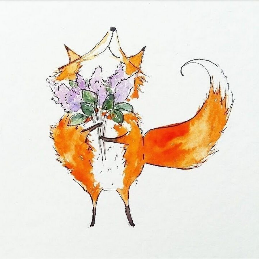 Скетчинг акварелью лиса