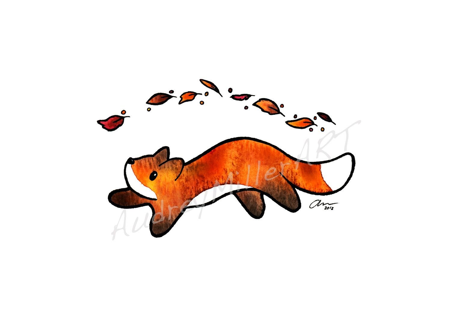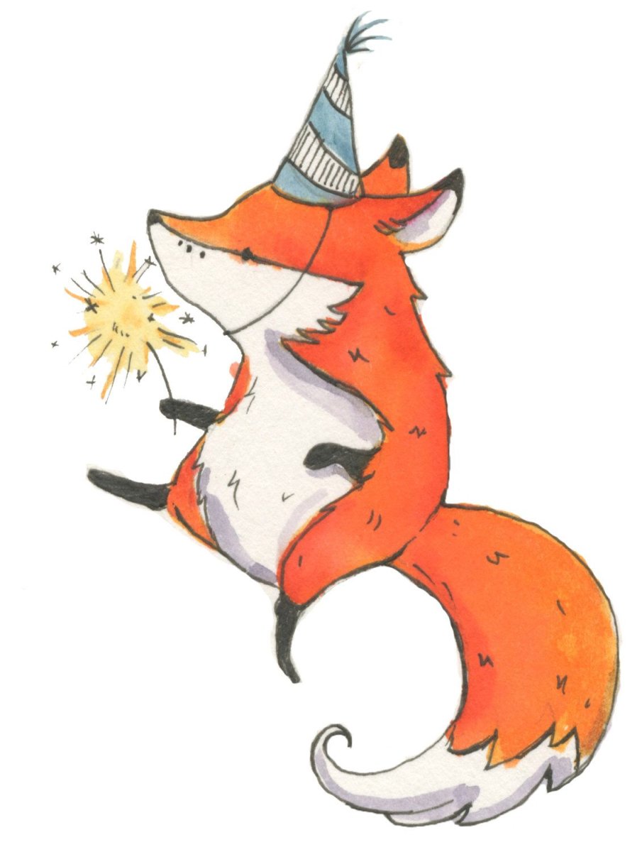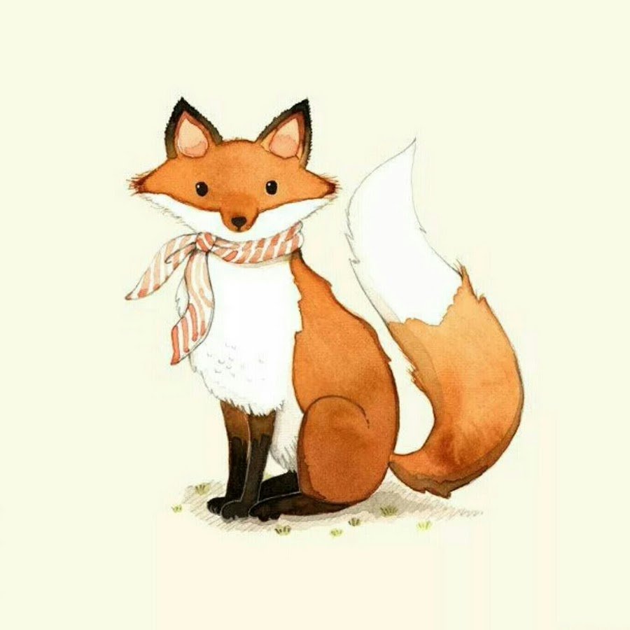 Смешная лиса акварель