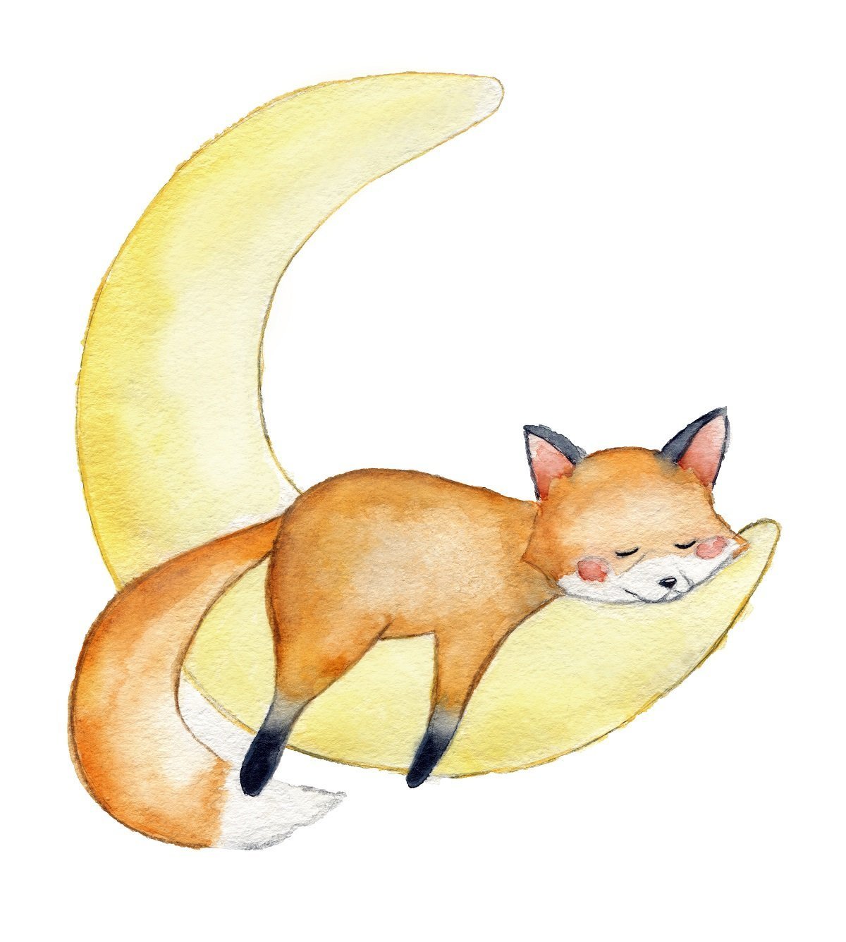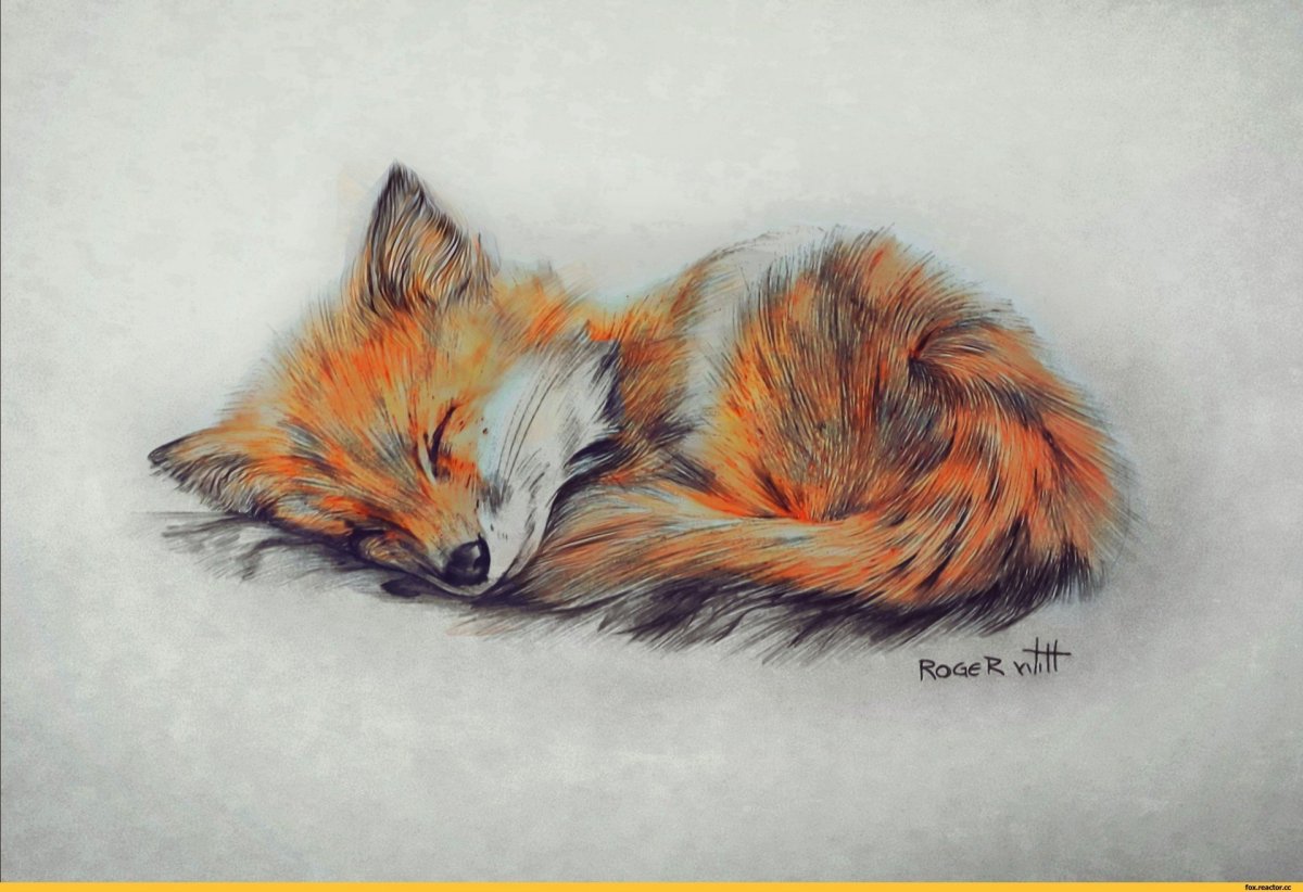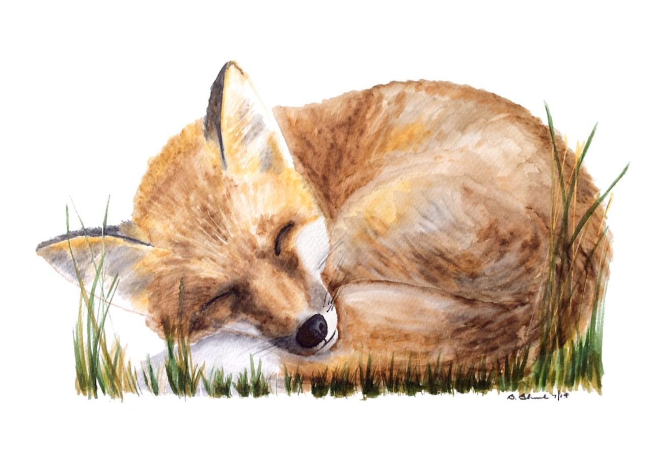 Лиса спит акварель