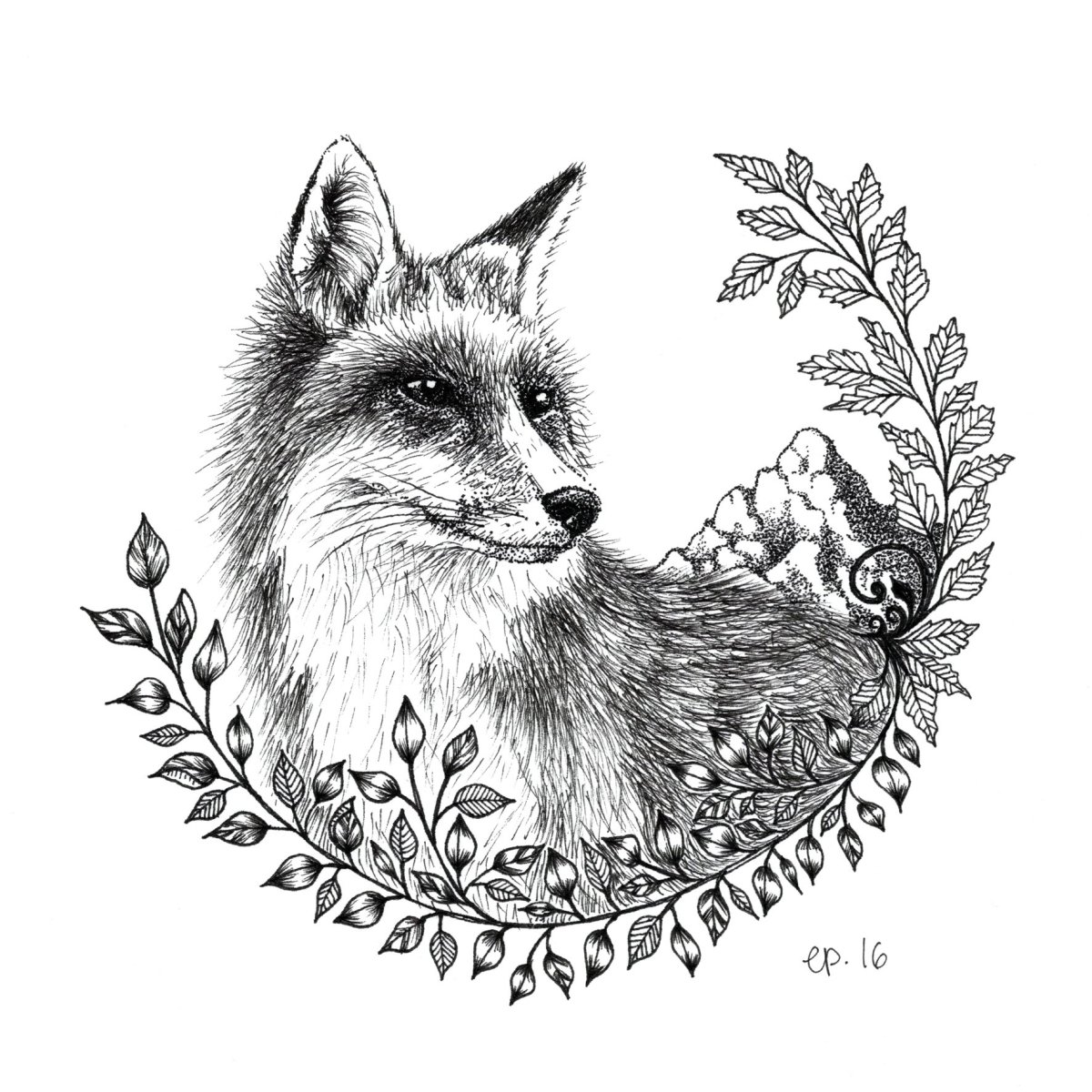 Рисунок лисы ручкой