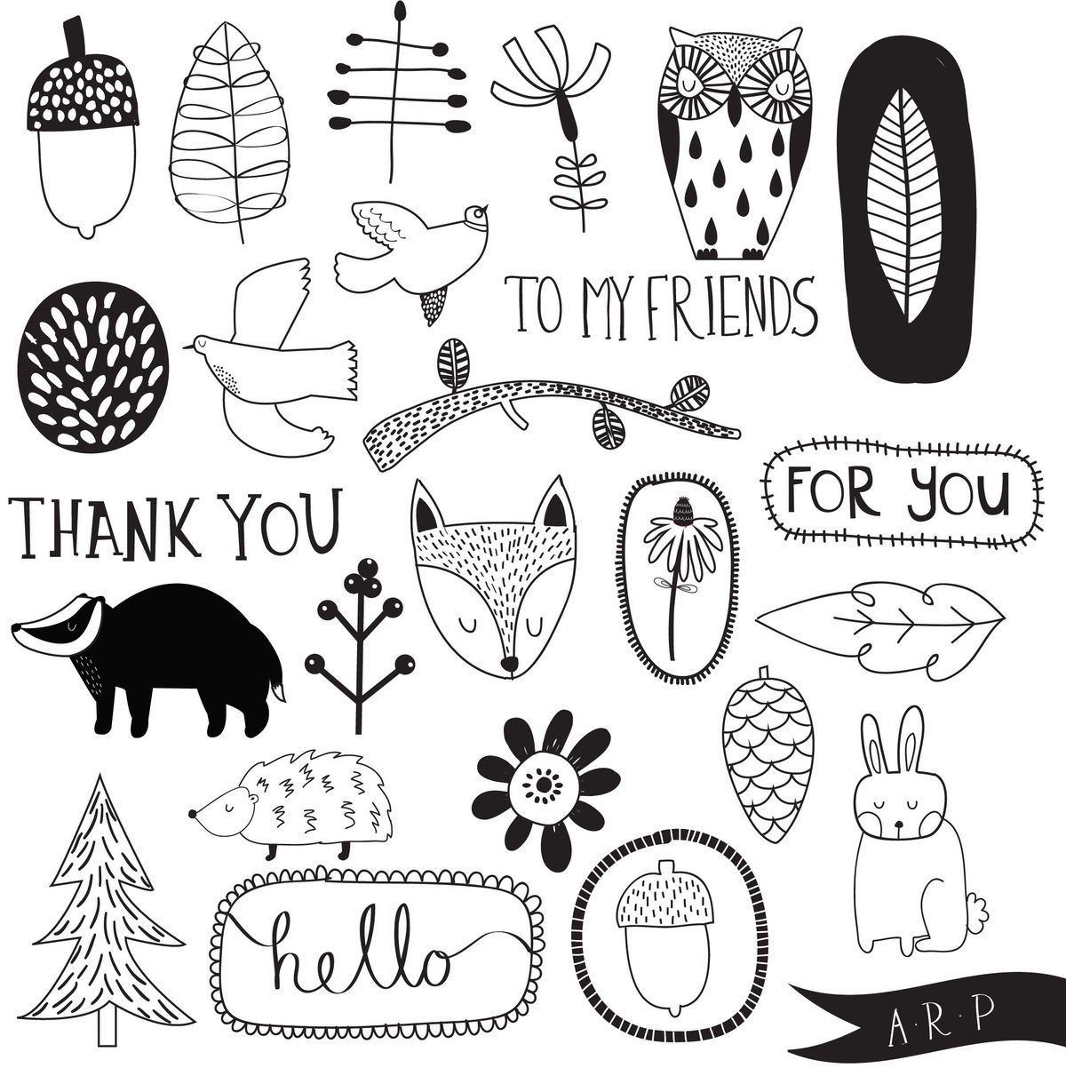 Стикеры для распечатки черно белые