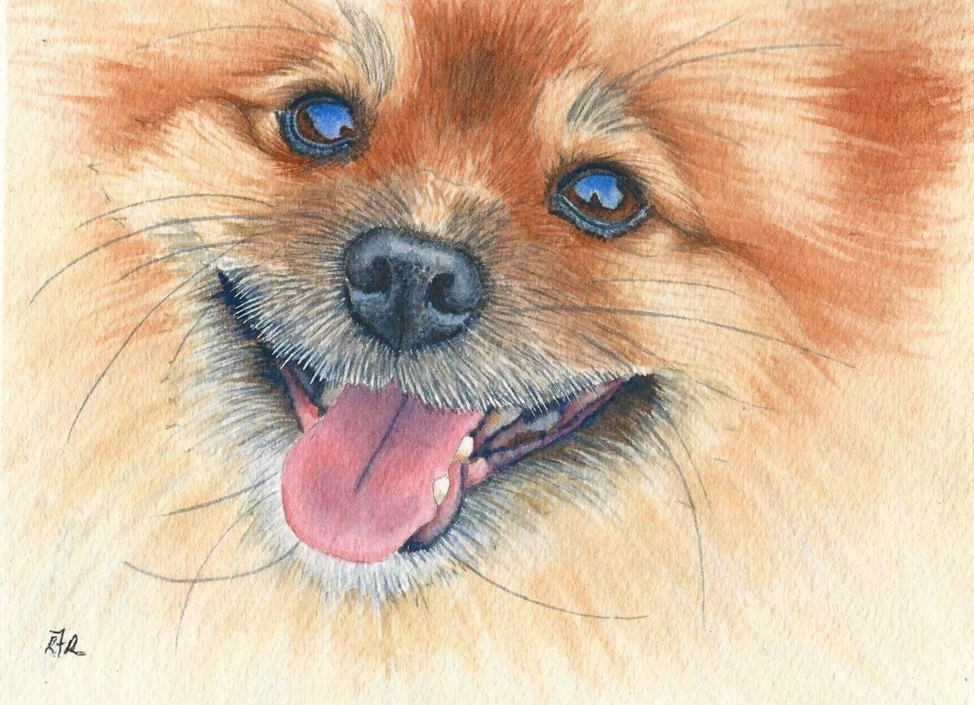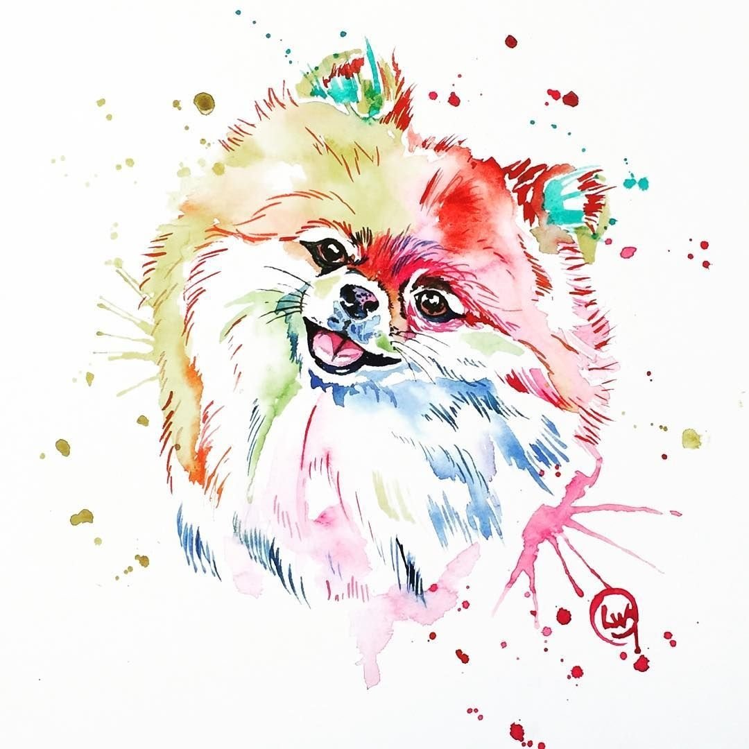 Шпиц акварелью