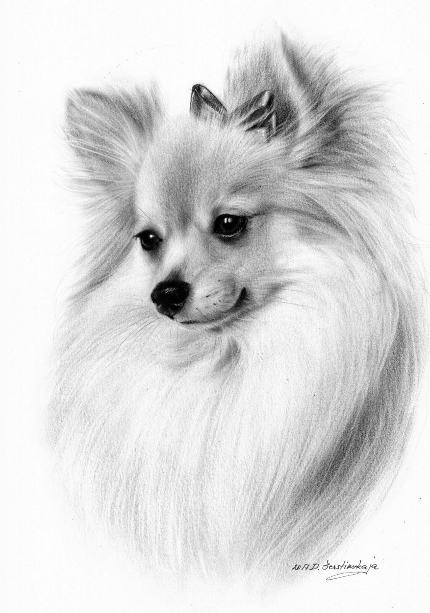 Шпиц рисунок карандашом