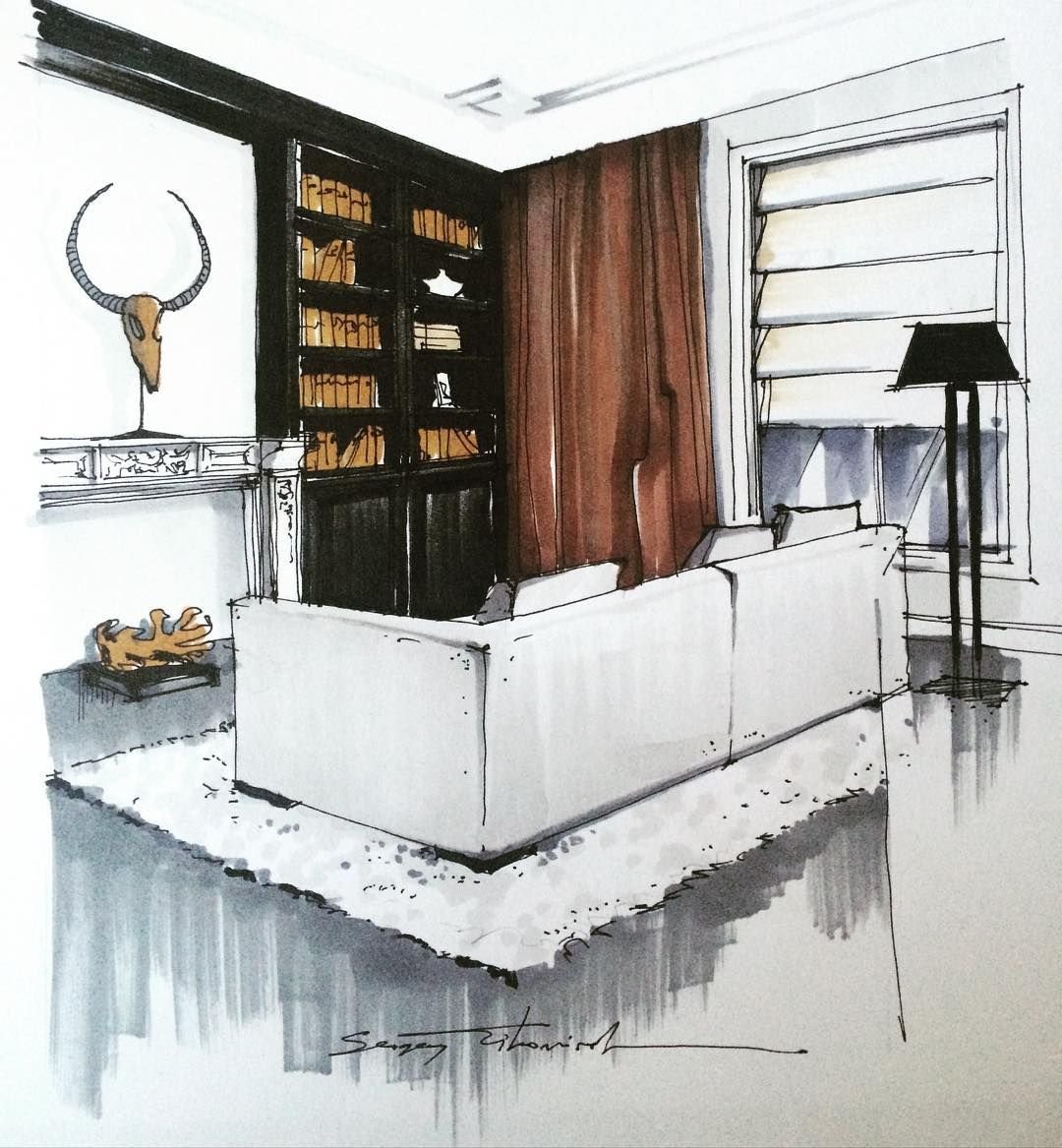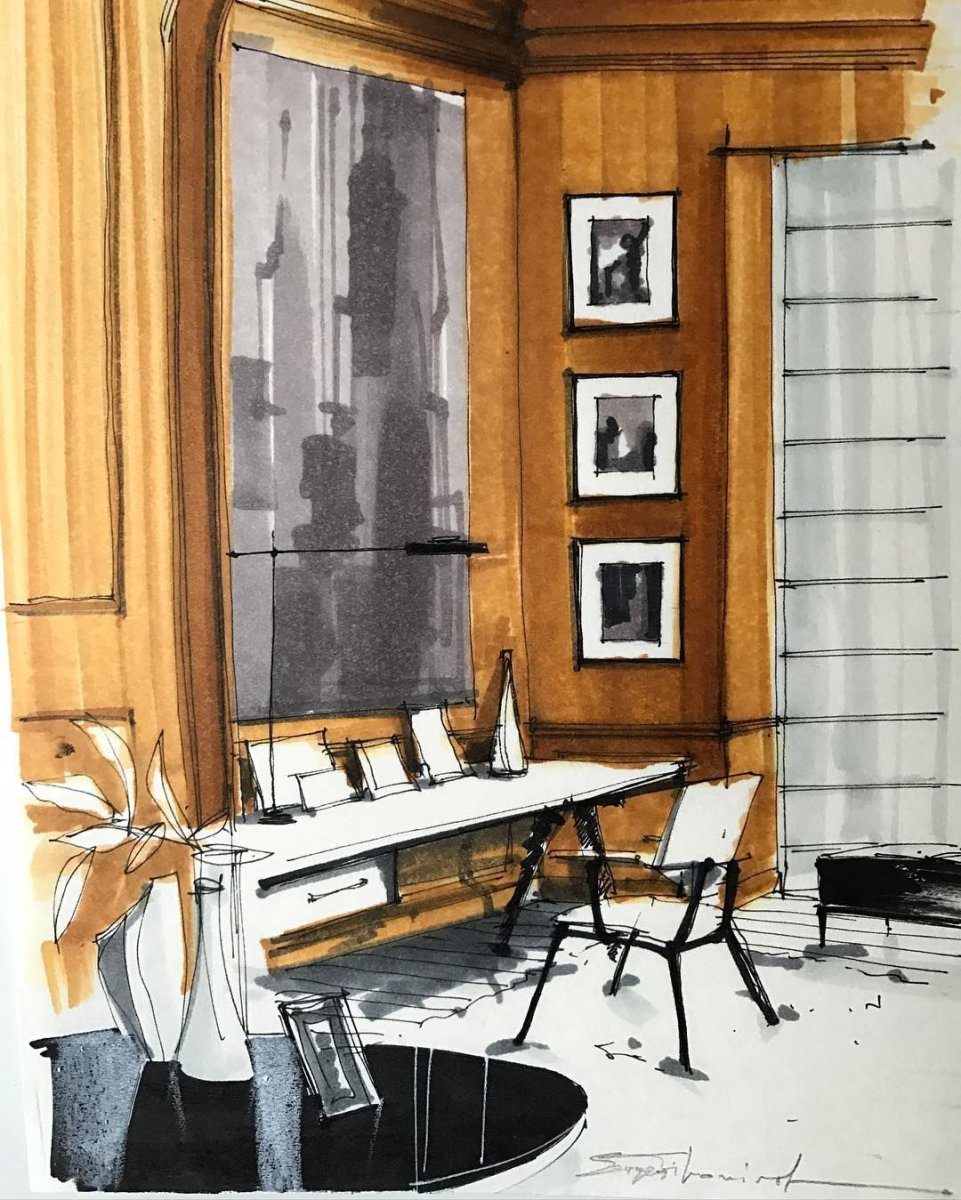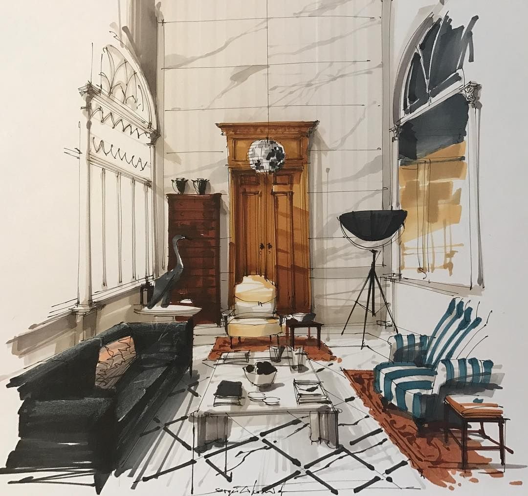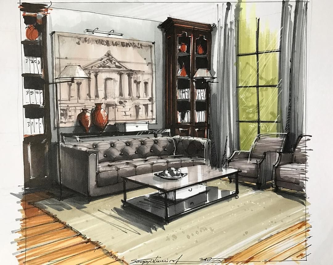 Сергей Тихомиров - интерьерный скетчинг маркерами