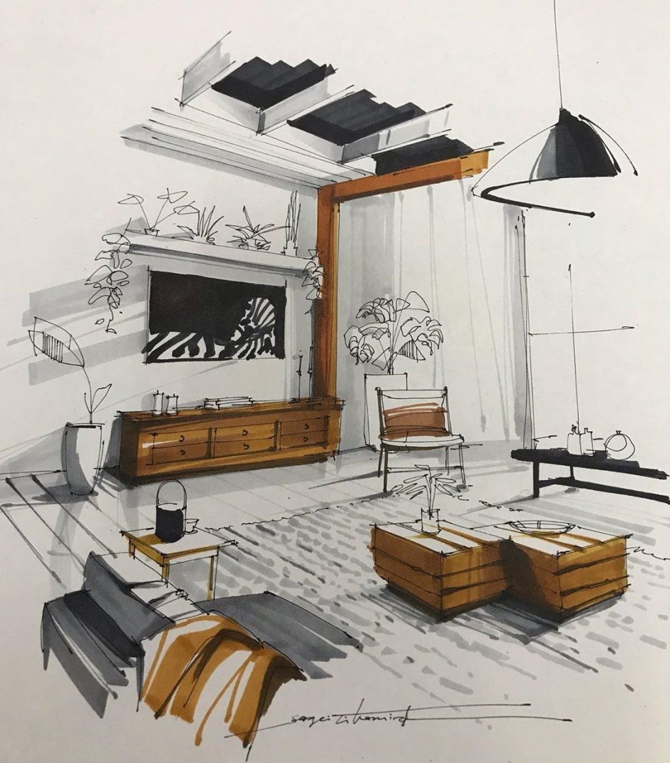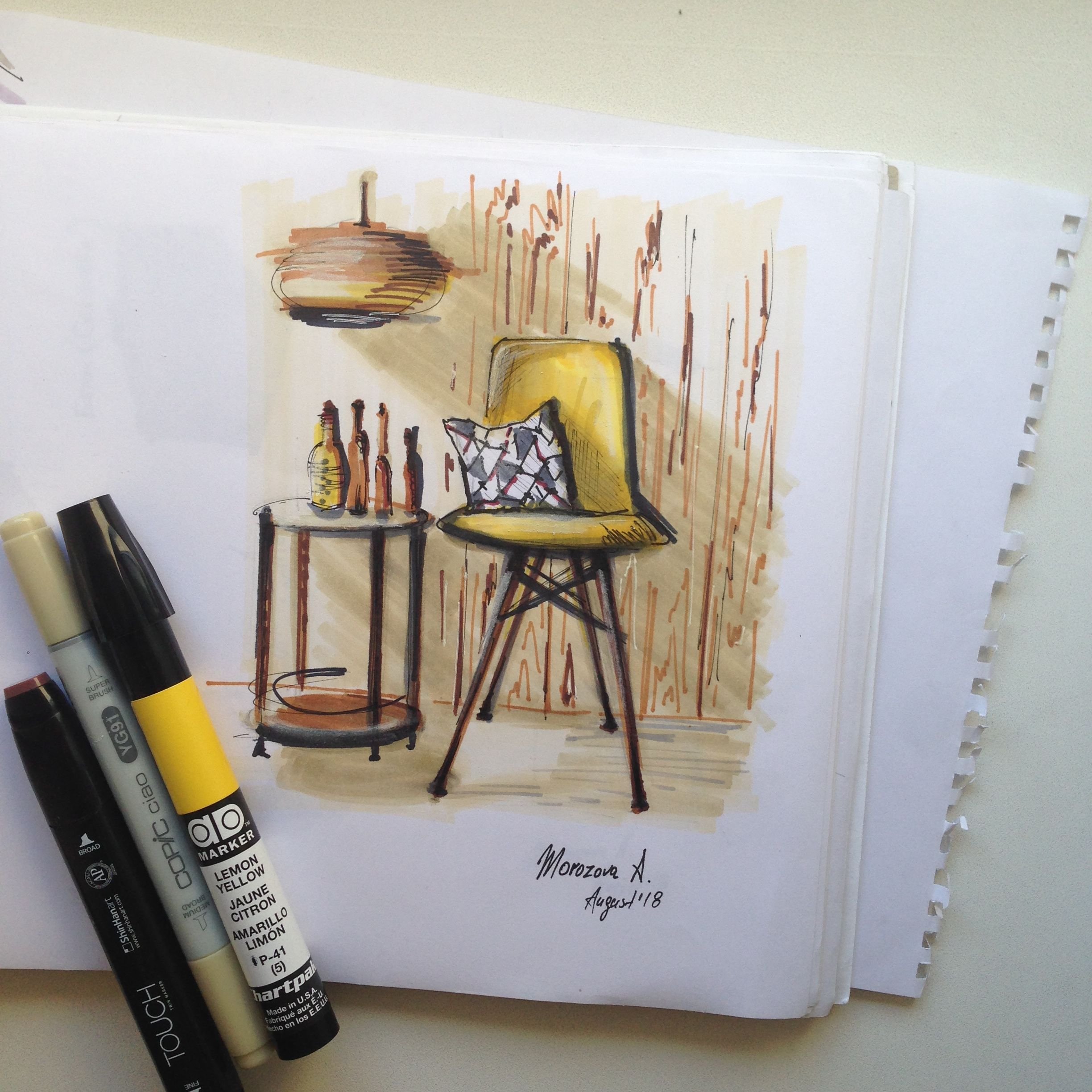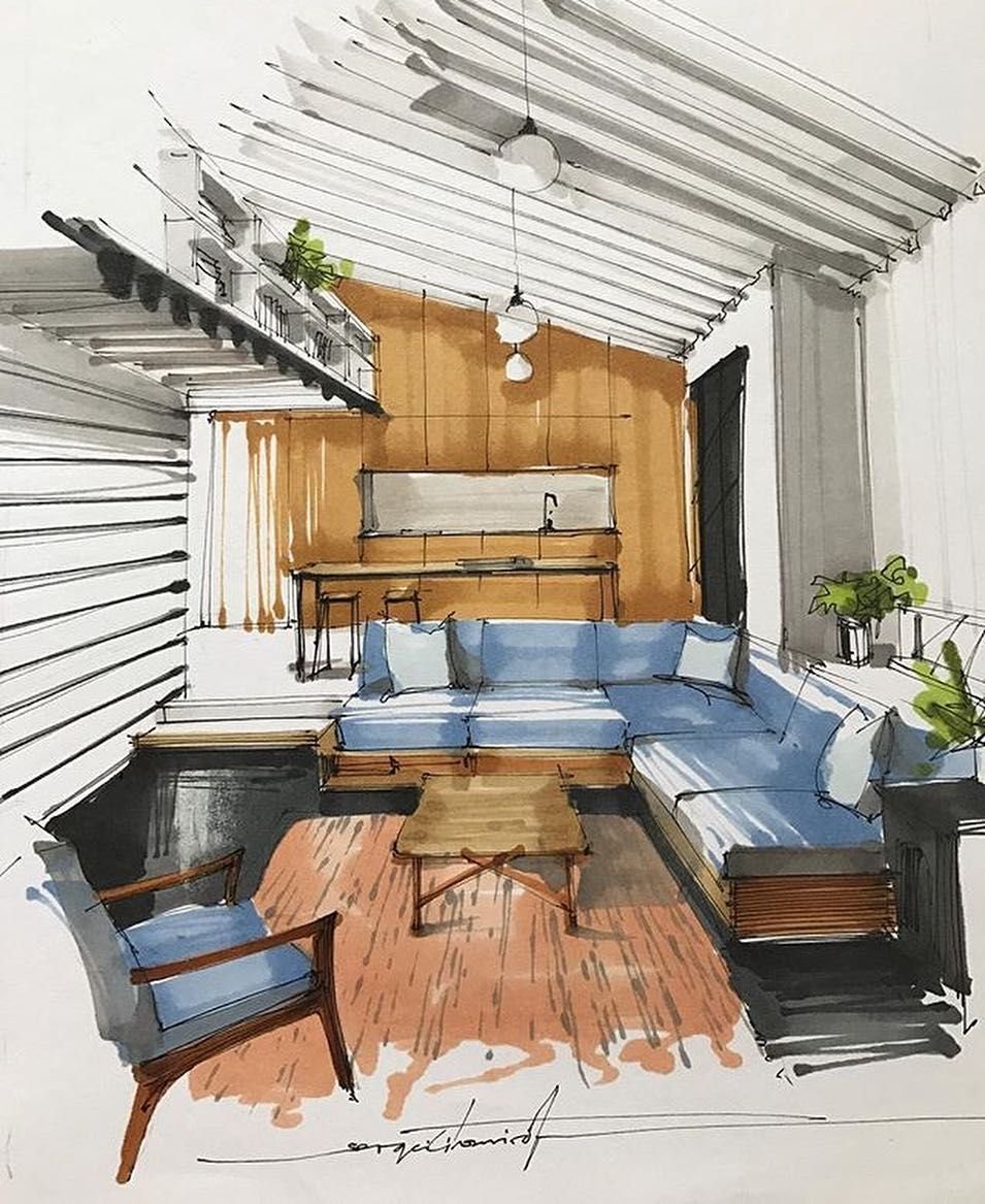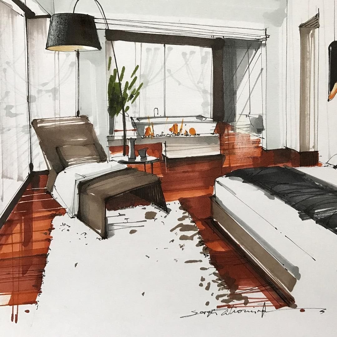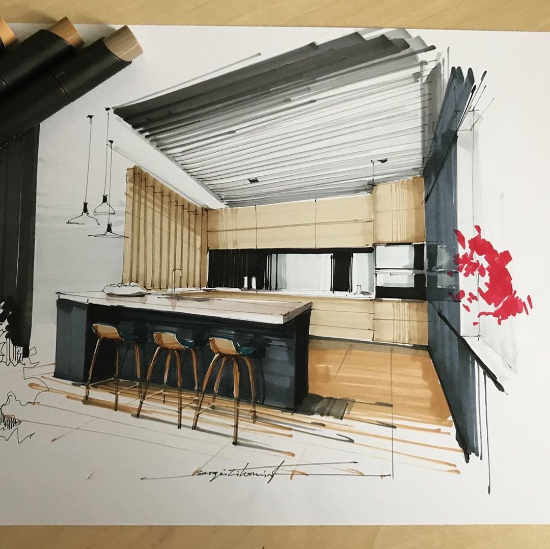 Сергей Тихомиров - интерьерный скетчинг маркерами
