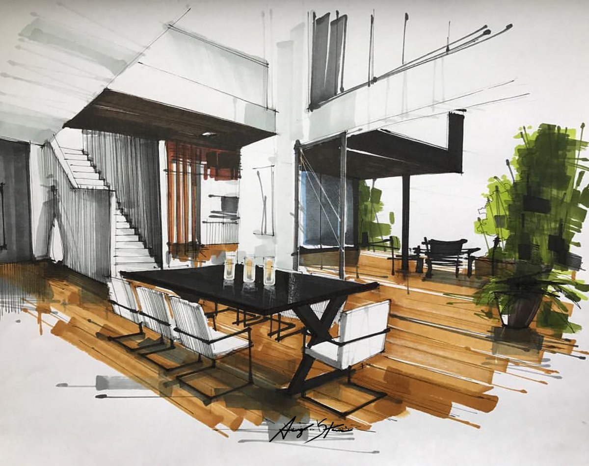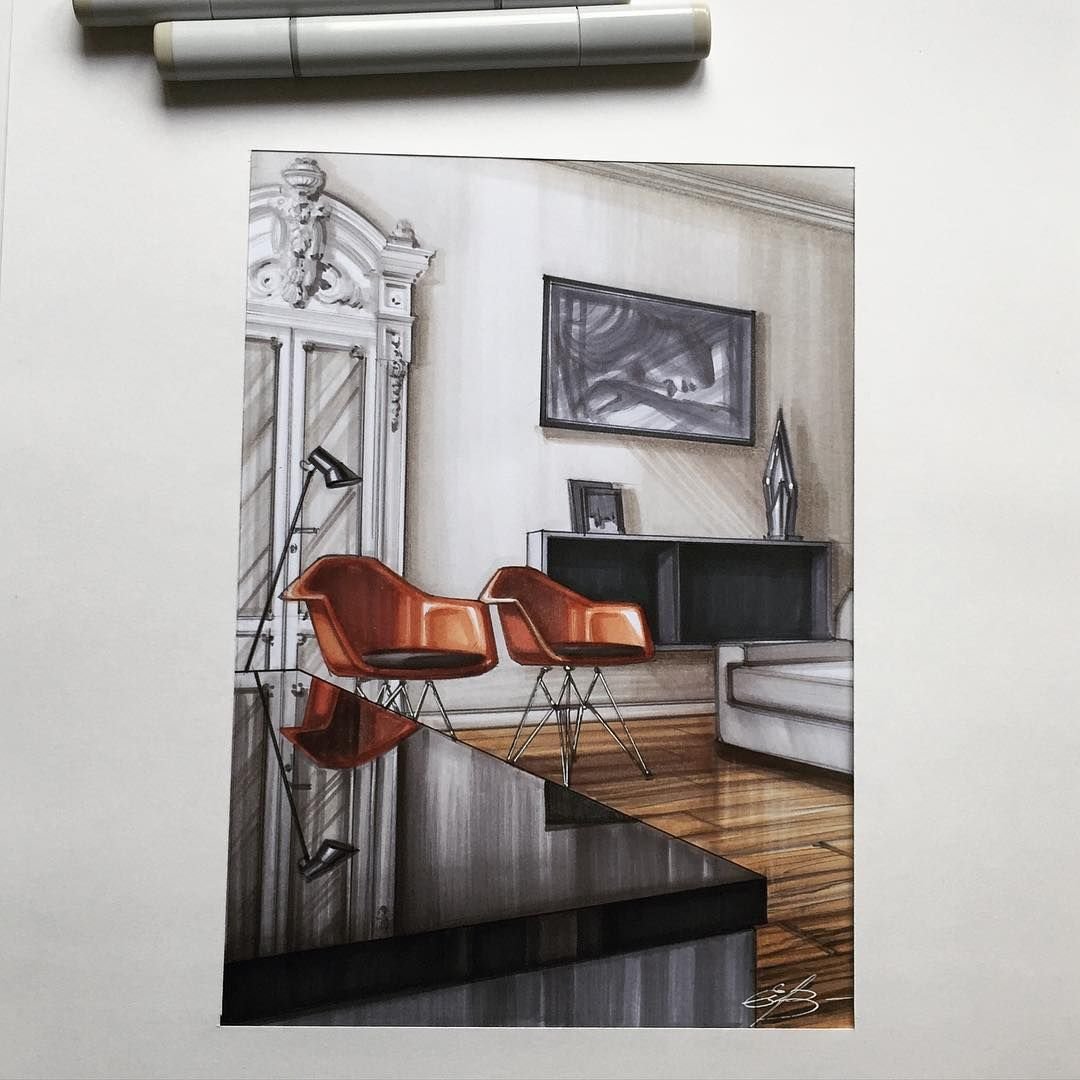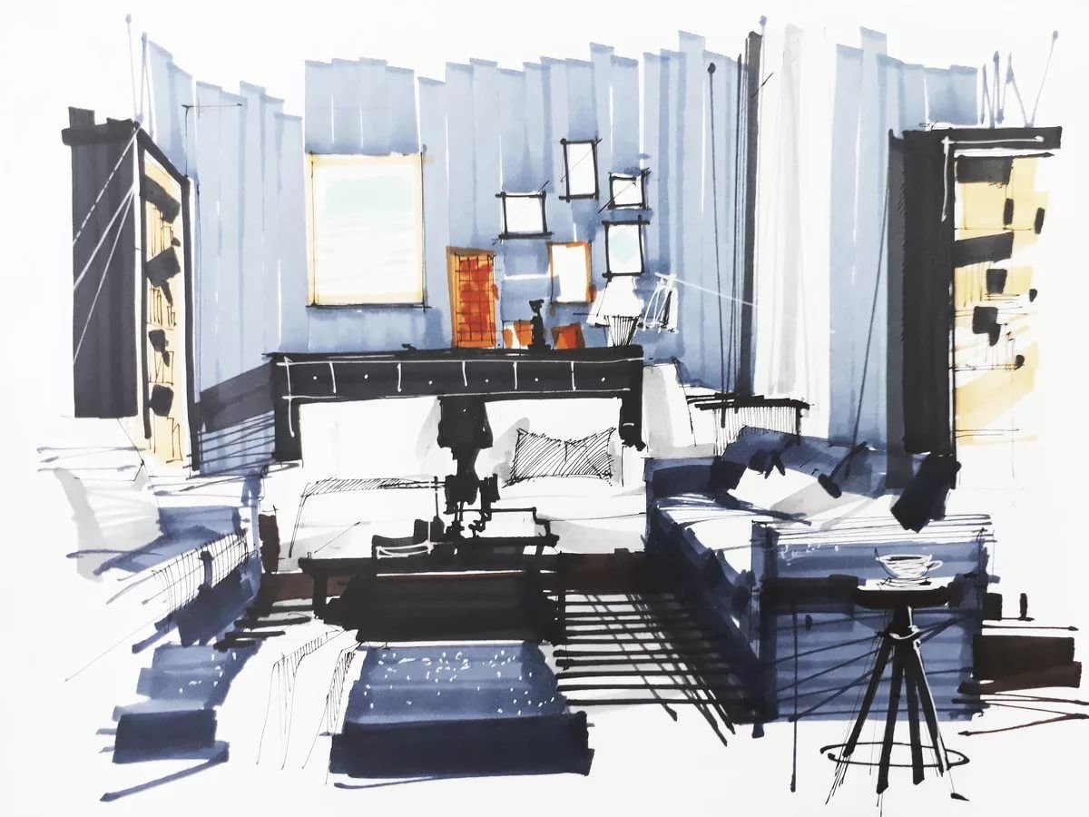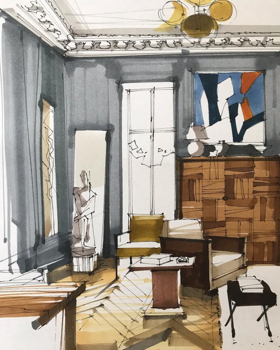 Сергей Тихомиров - интерьерный скетчинг маркерами