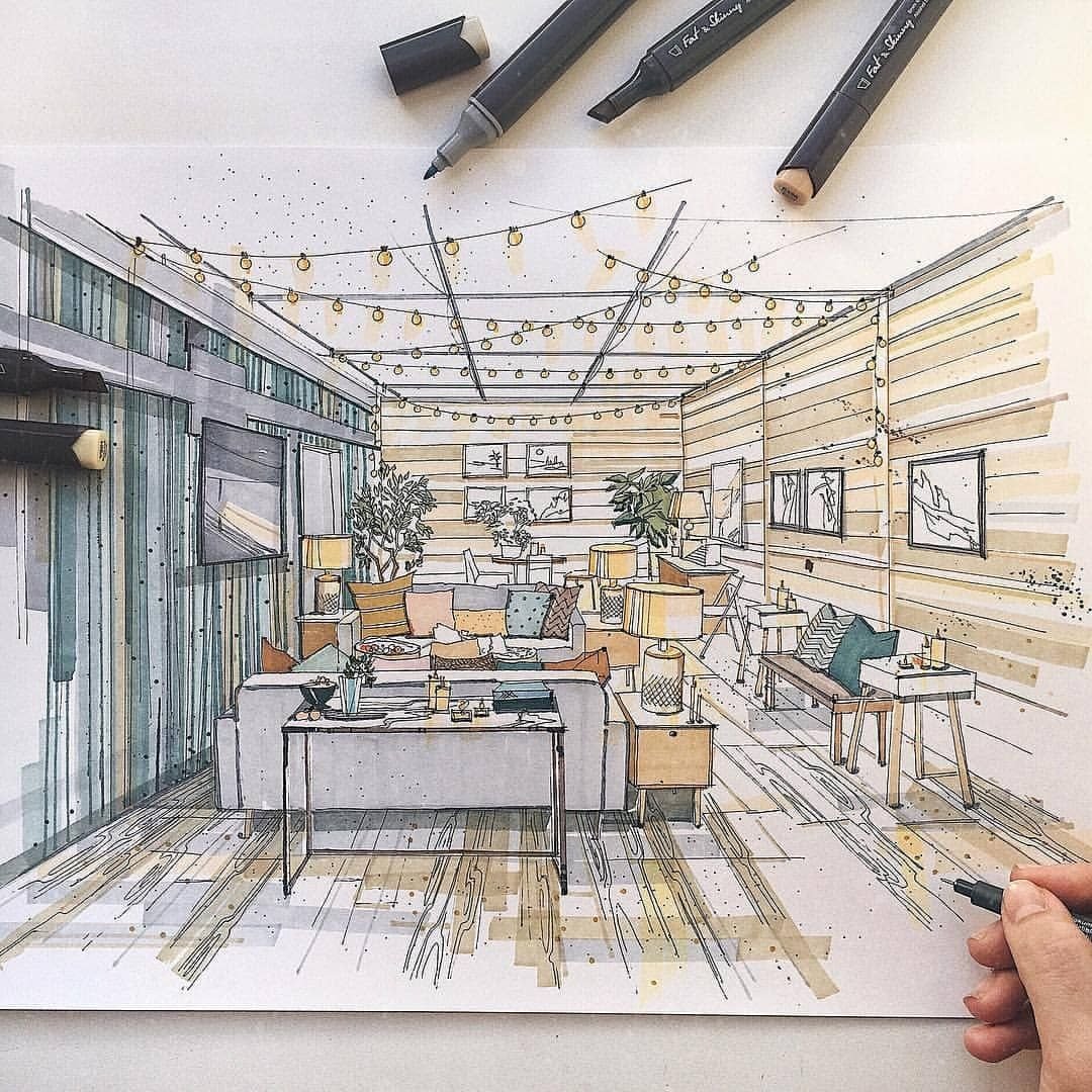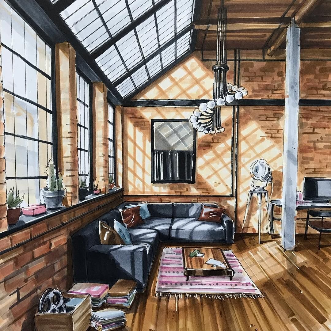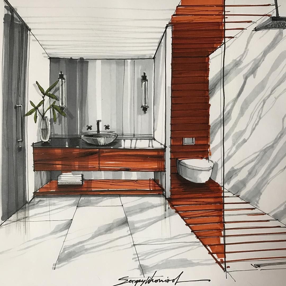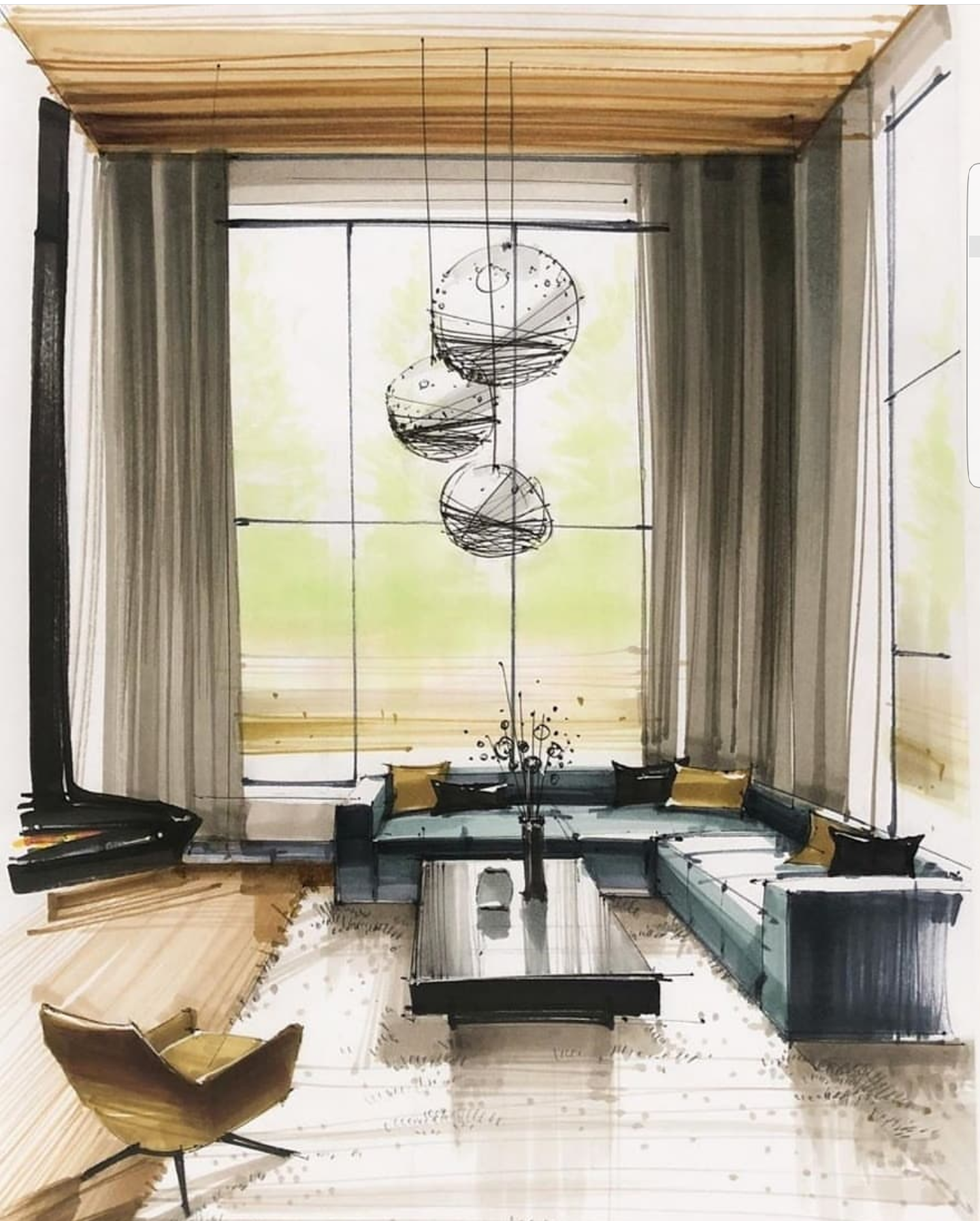 Сергей Тихомиров - интерьерный скетчинг маркерами