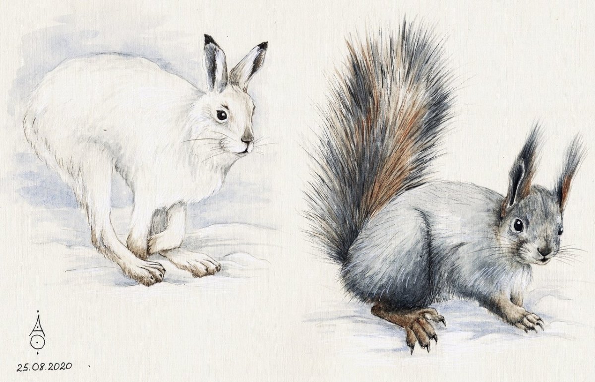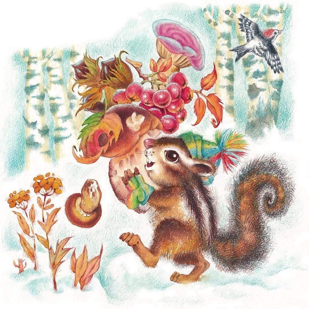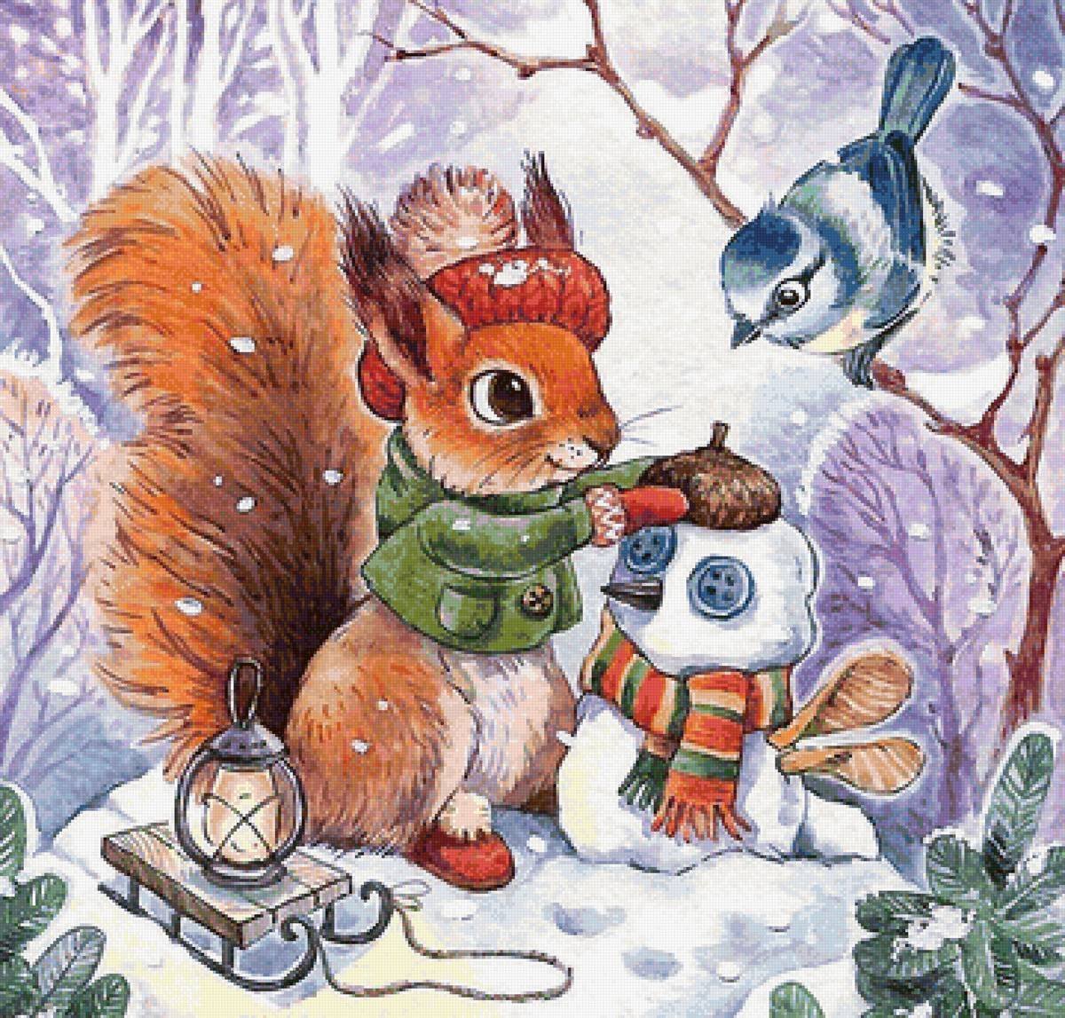 Рисунок белка зимой