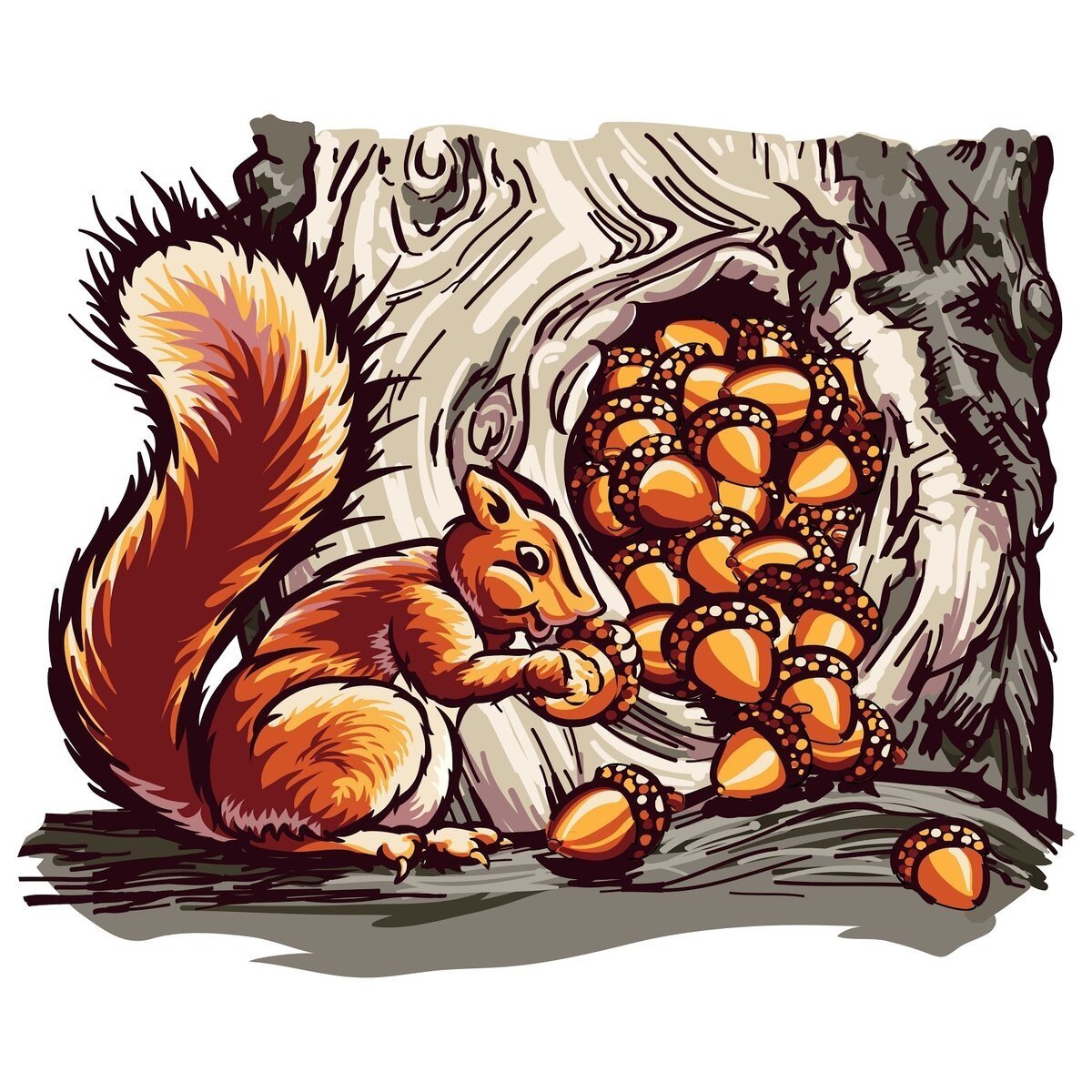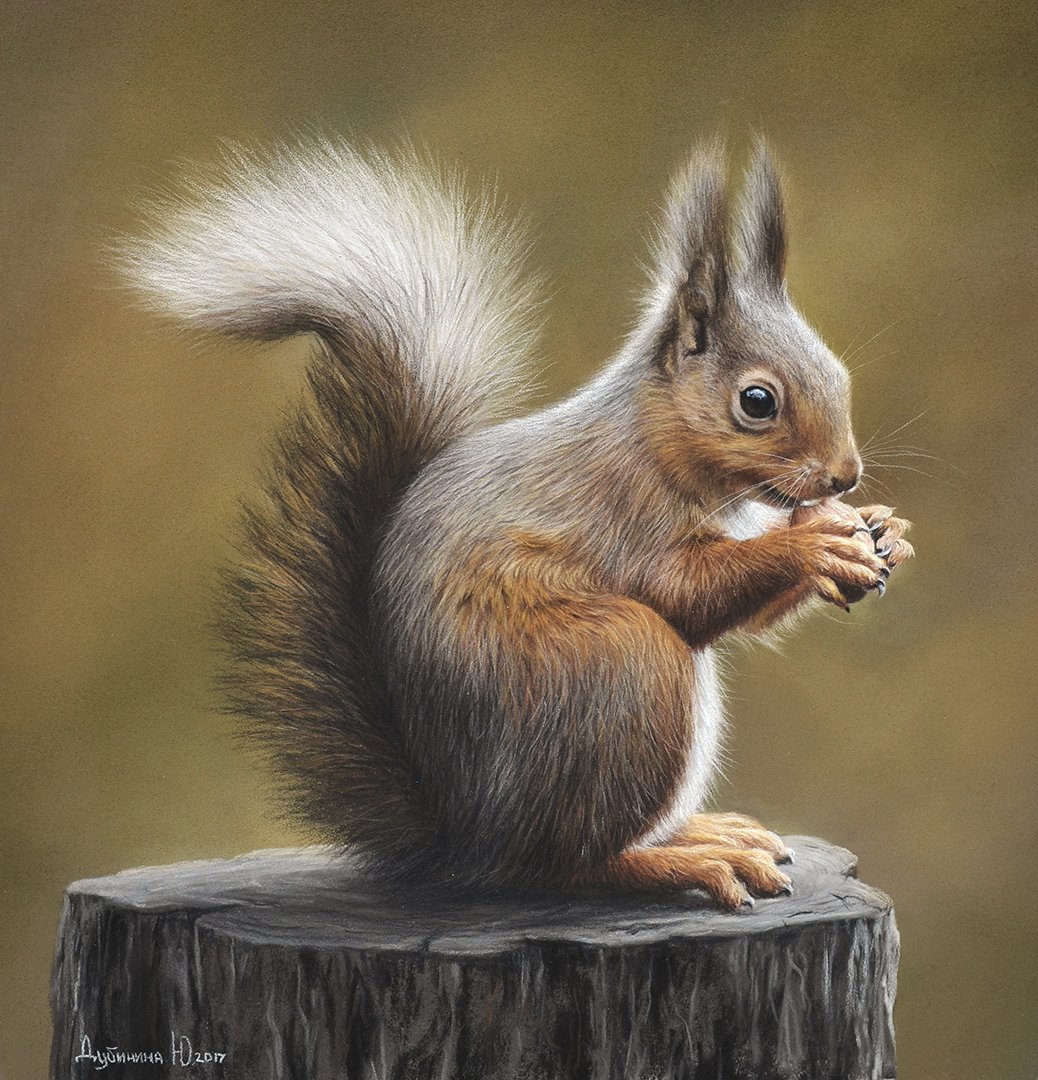 Белка на пне рисунки