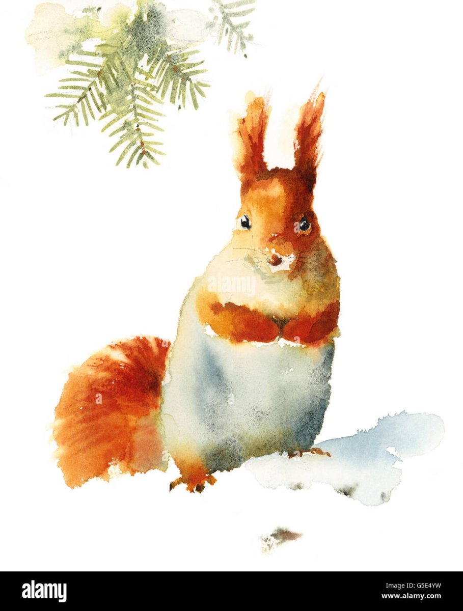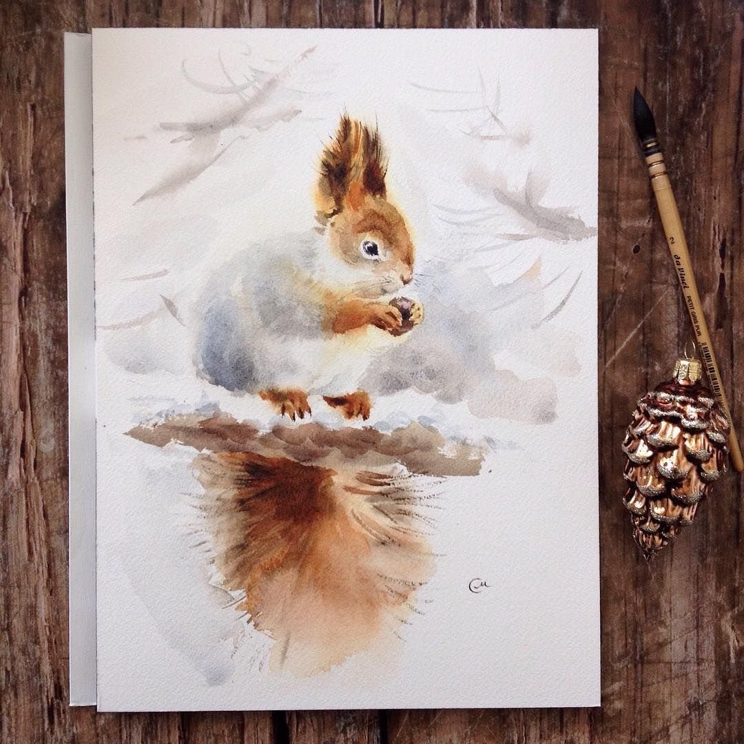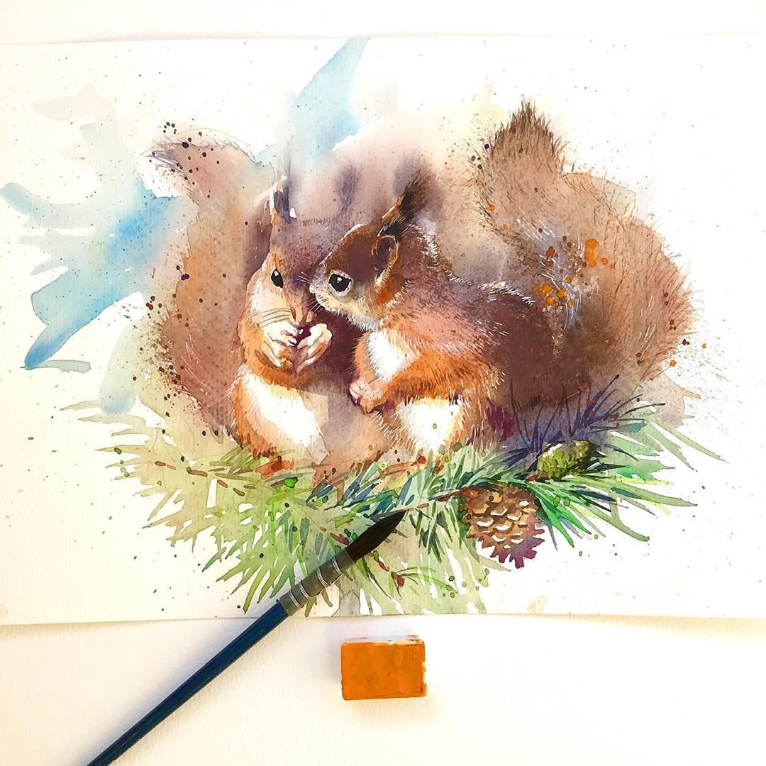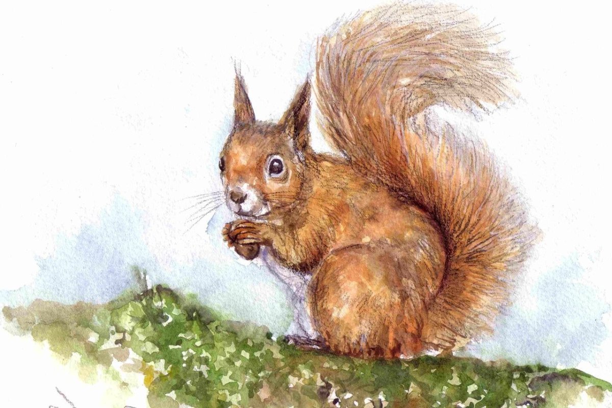 Белка акварелью