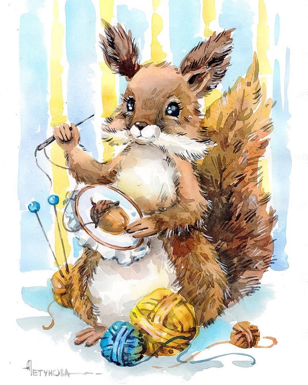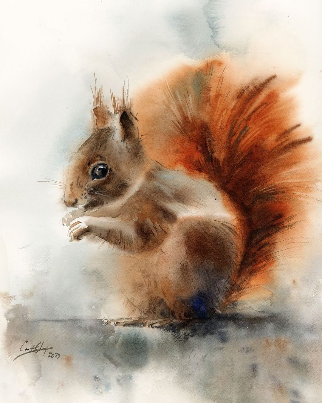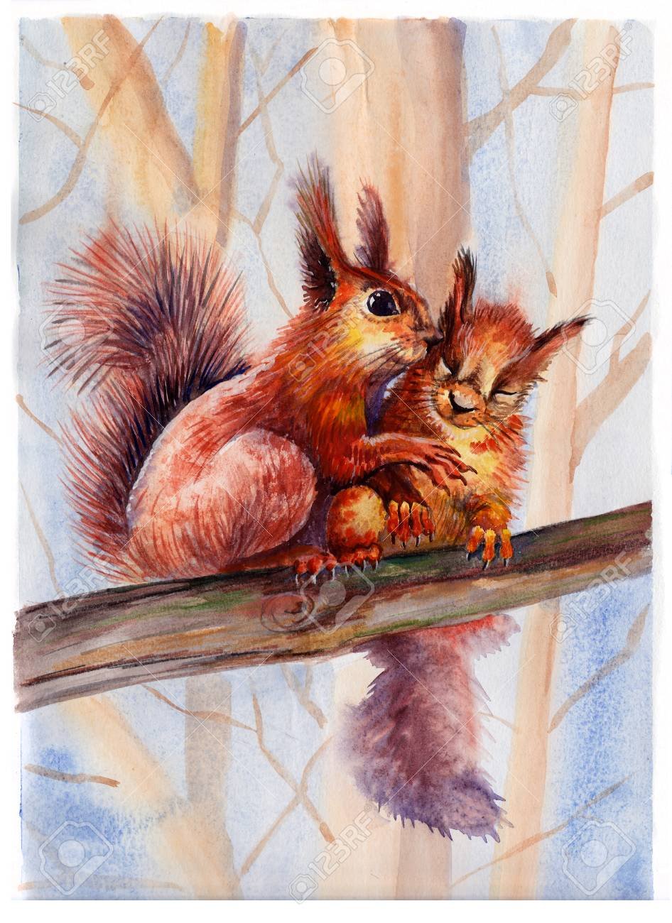 Белка акварелью