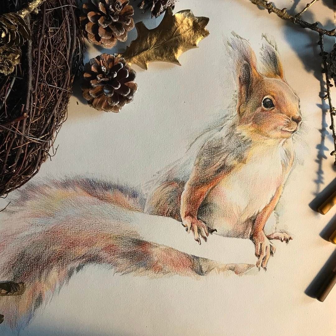 Белочка рисунок карандашом цветным