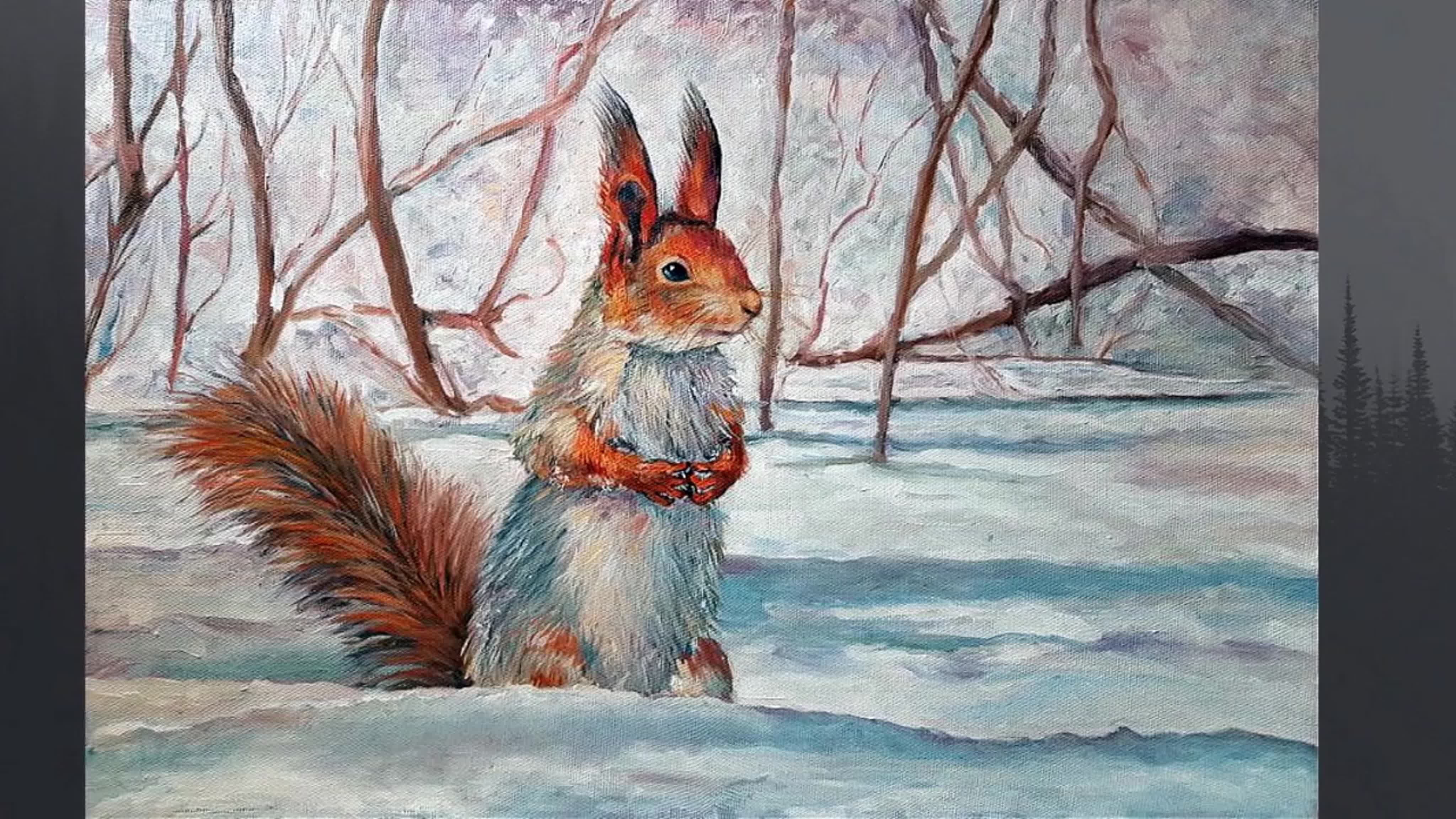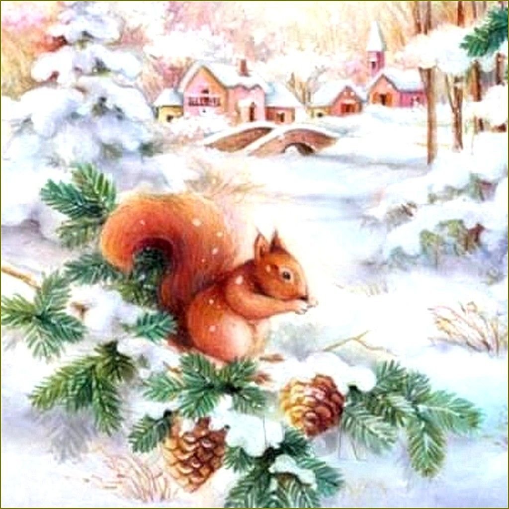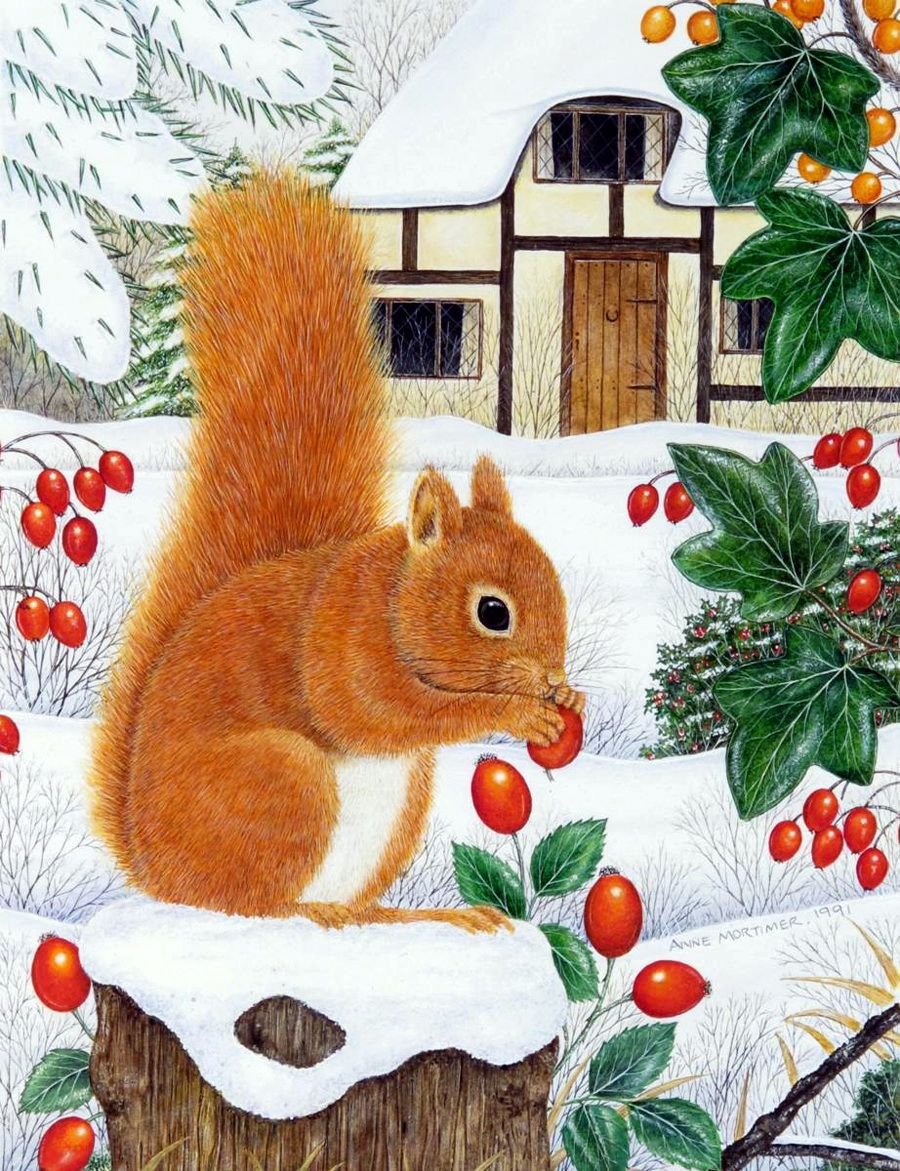 Белка зима живопись