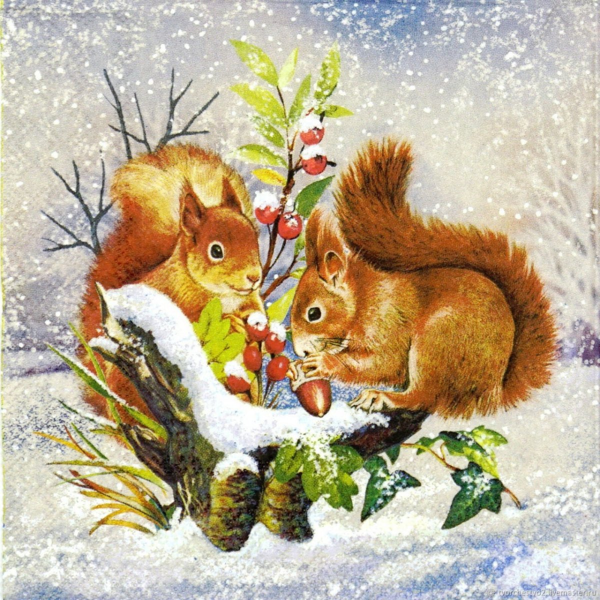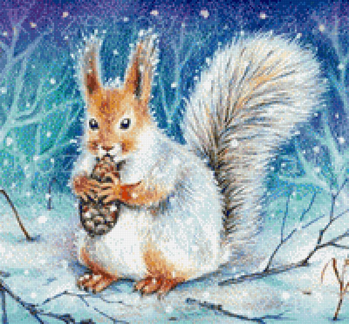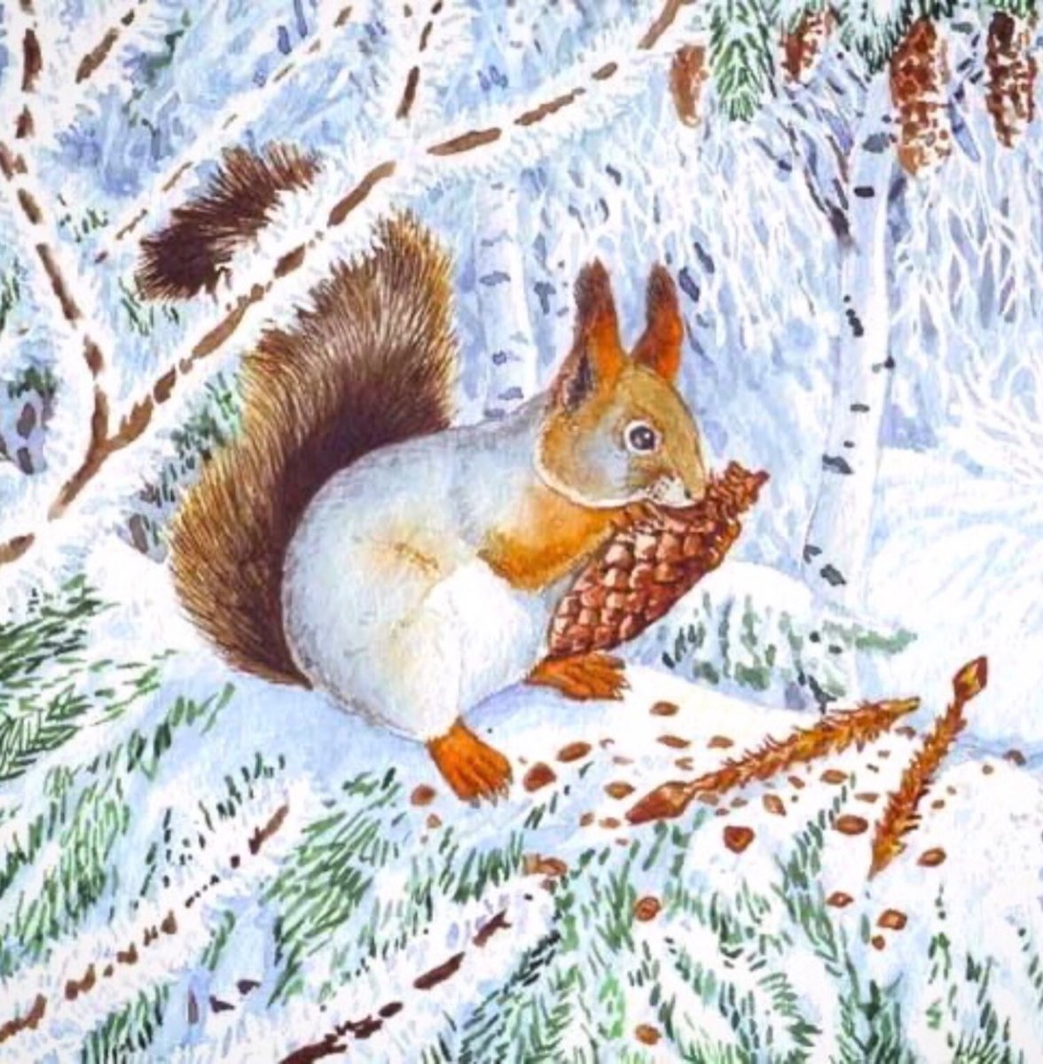 Белка зима живопись