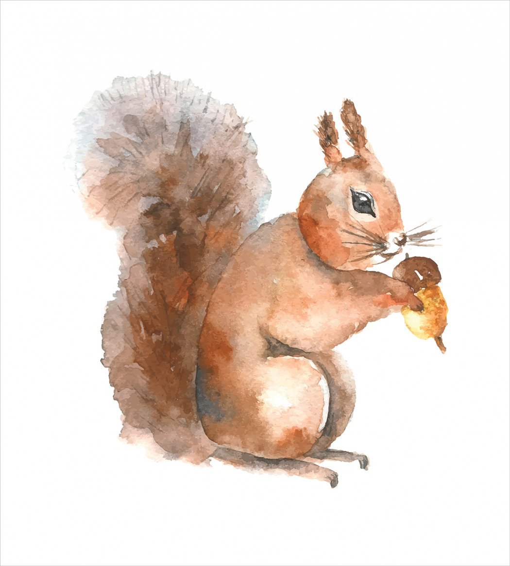 Белка с орехом акварель