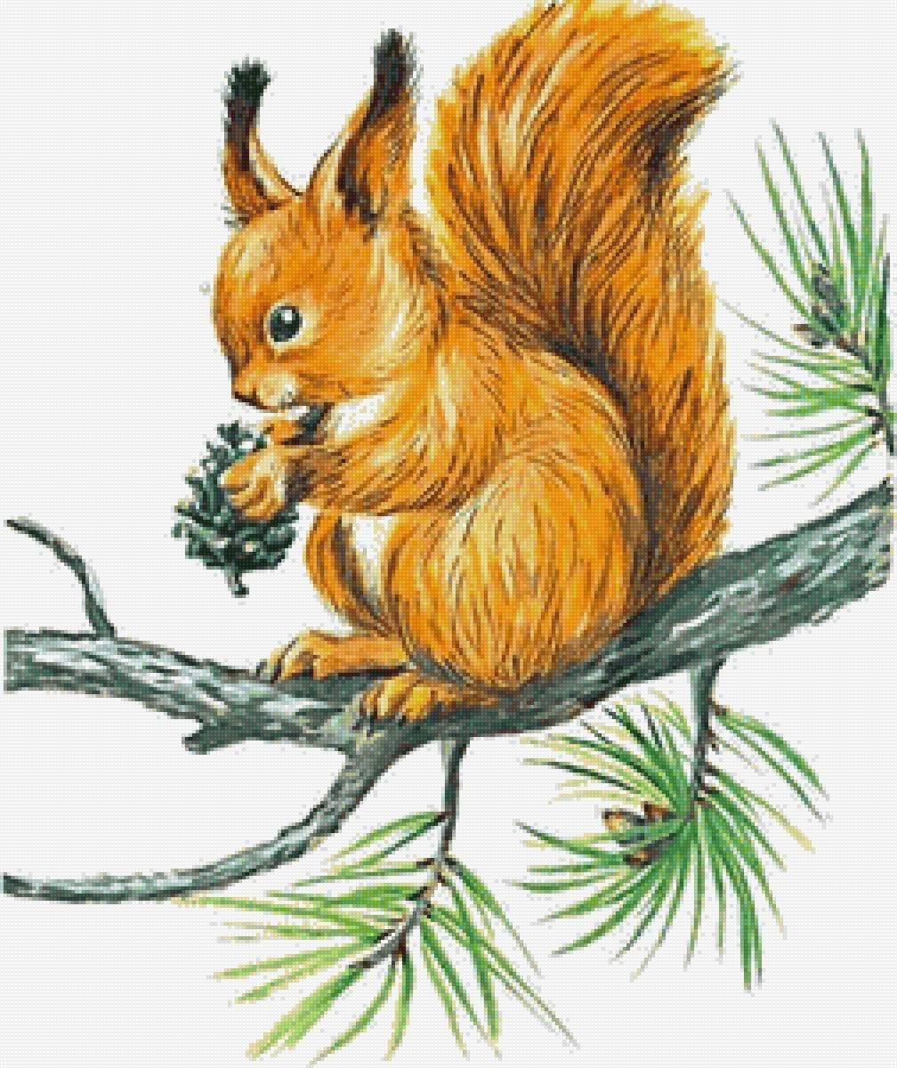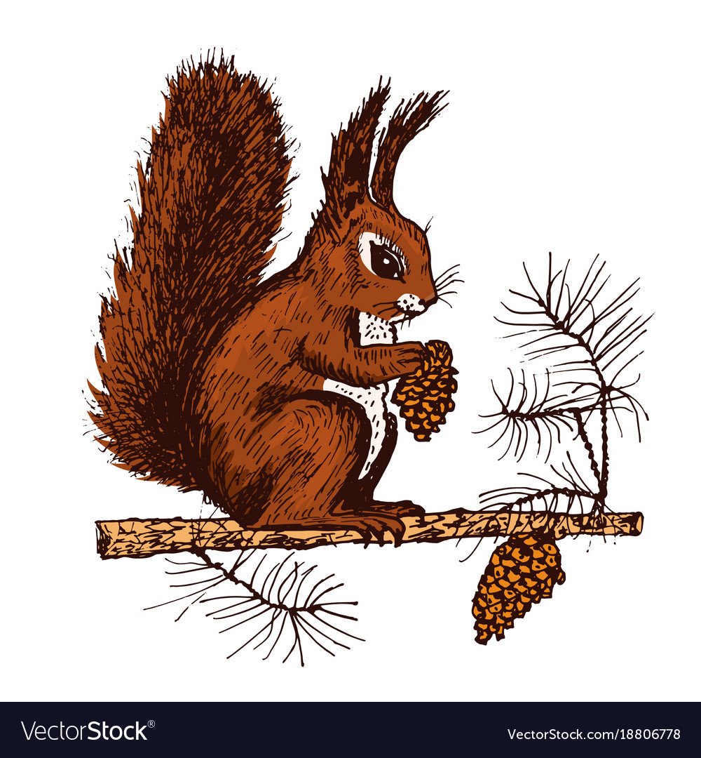 Рисунок белки с шишкой