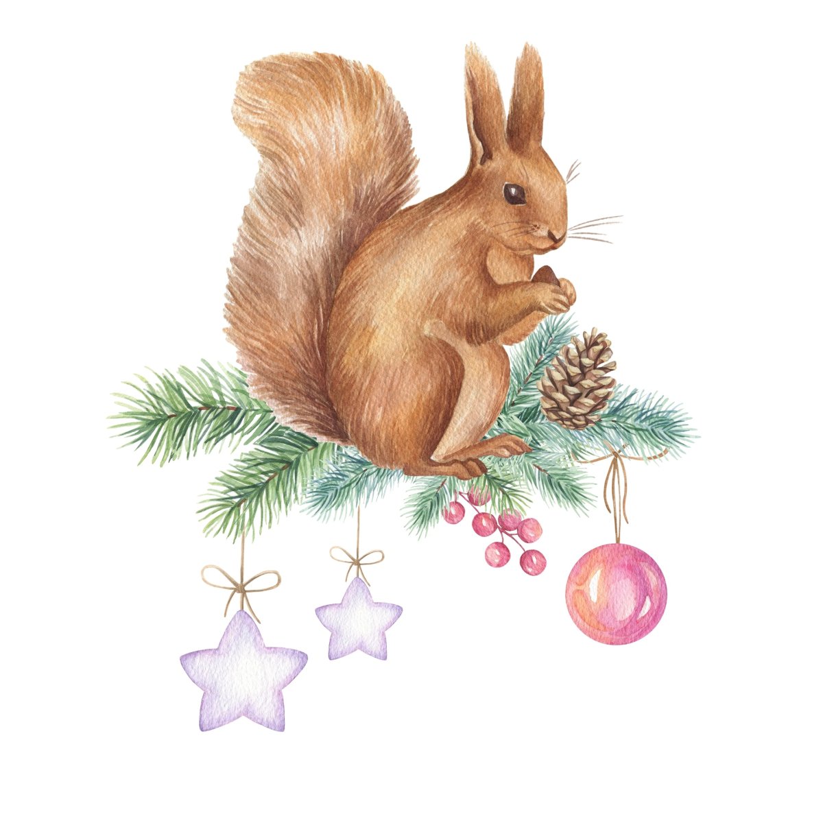 Белочка зимой акварель