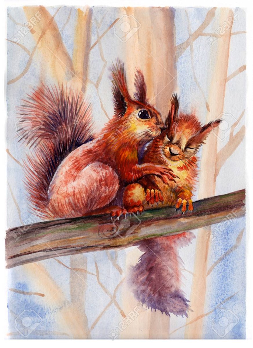 Белки в живописи акварели