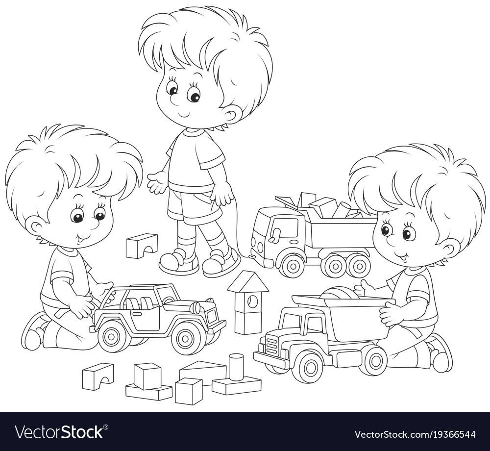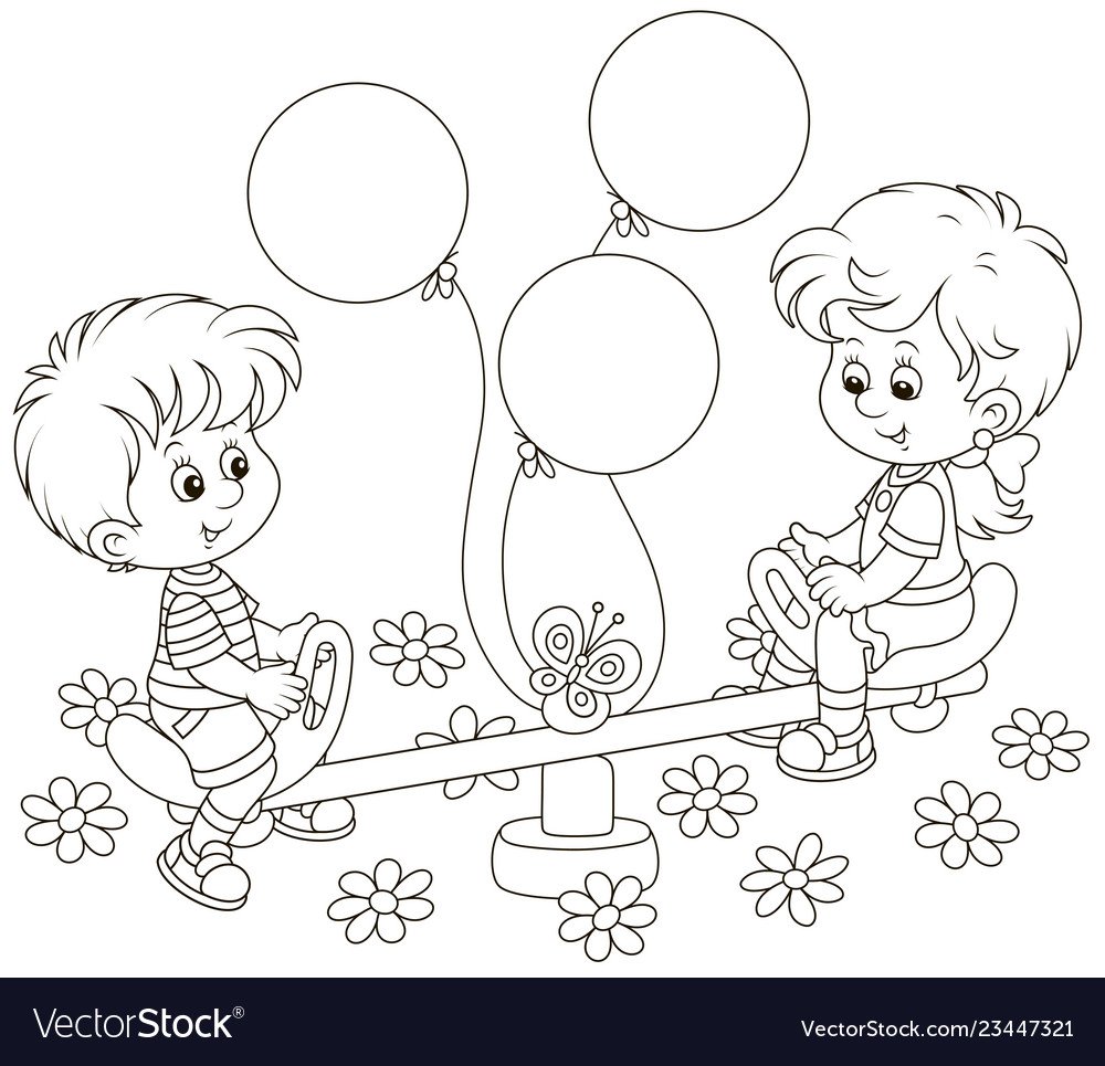 Контур детей играющих
