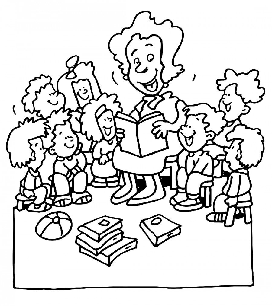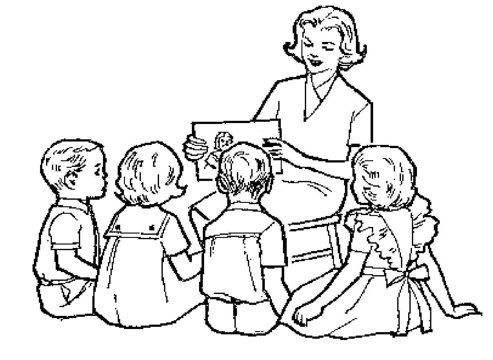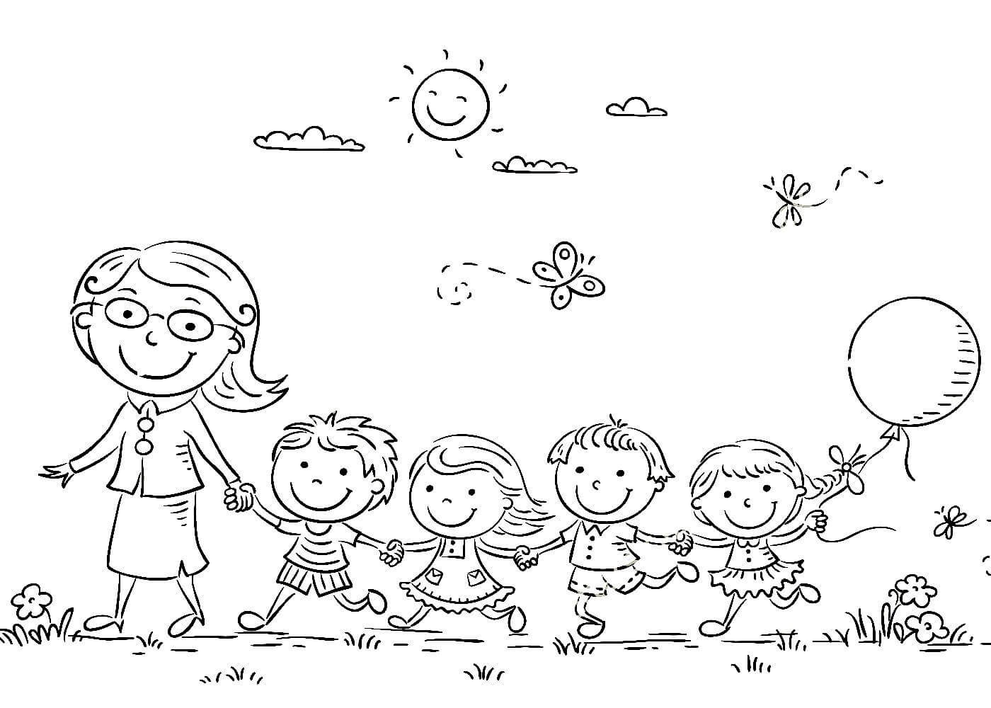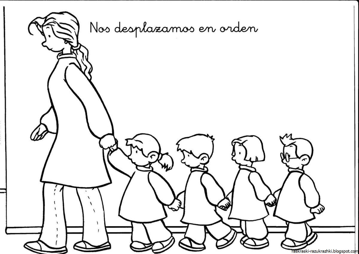 Раскраска воспитатель и дети в детском саду