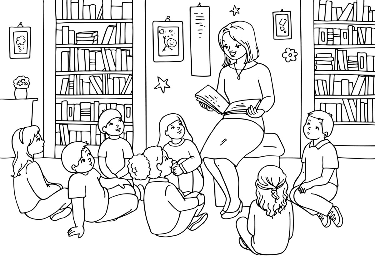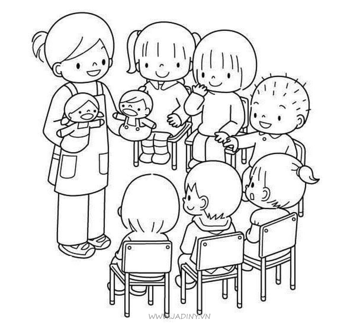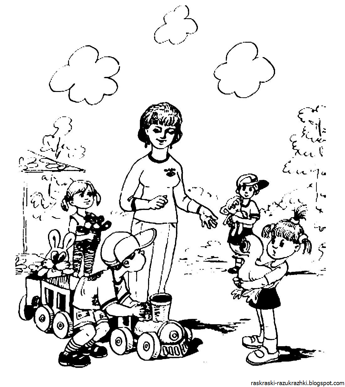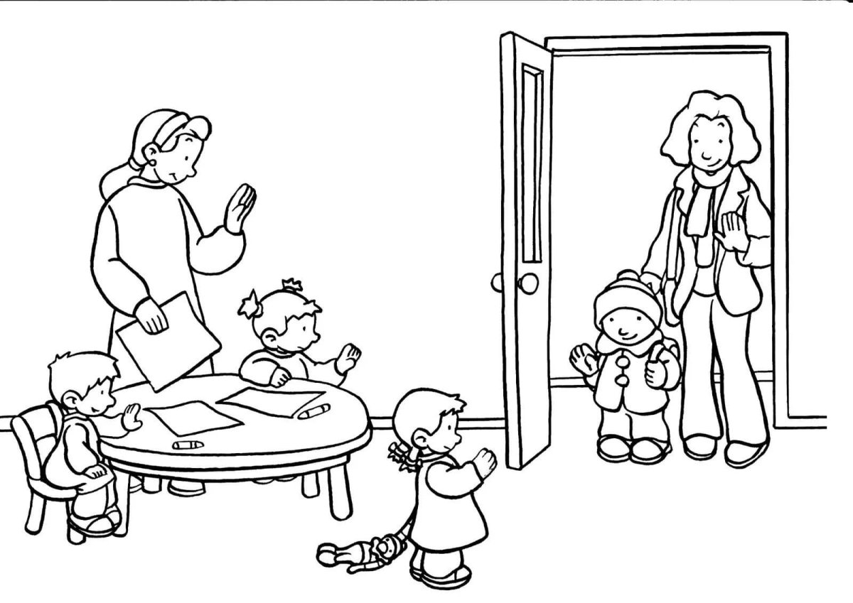 Раскраска воспитатель и дети в детском саду