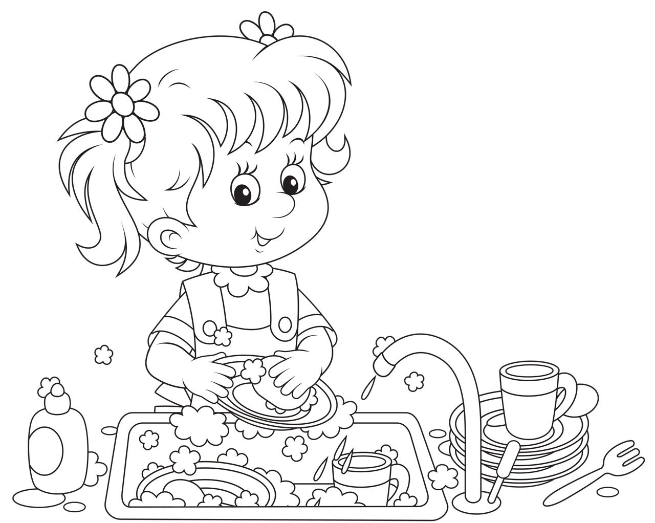 Раскраска мытье посуды для детей