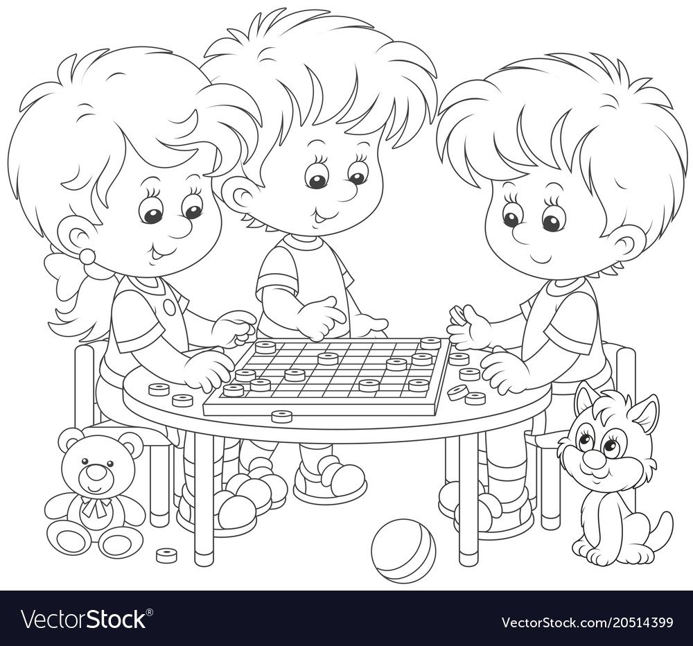 Раскраска дети играют в шашки