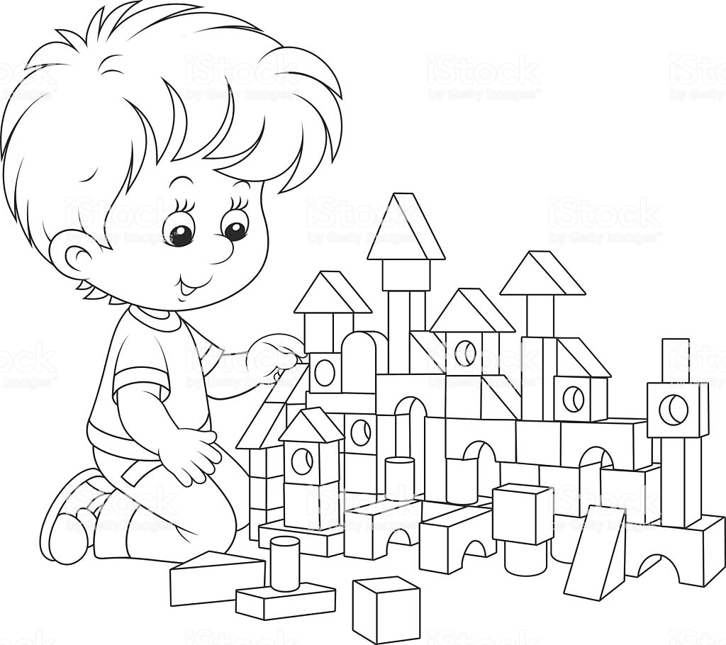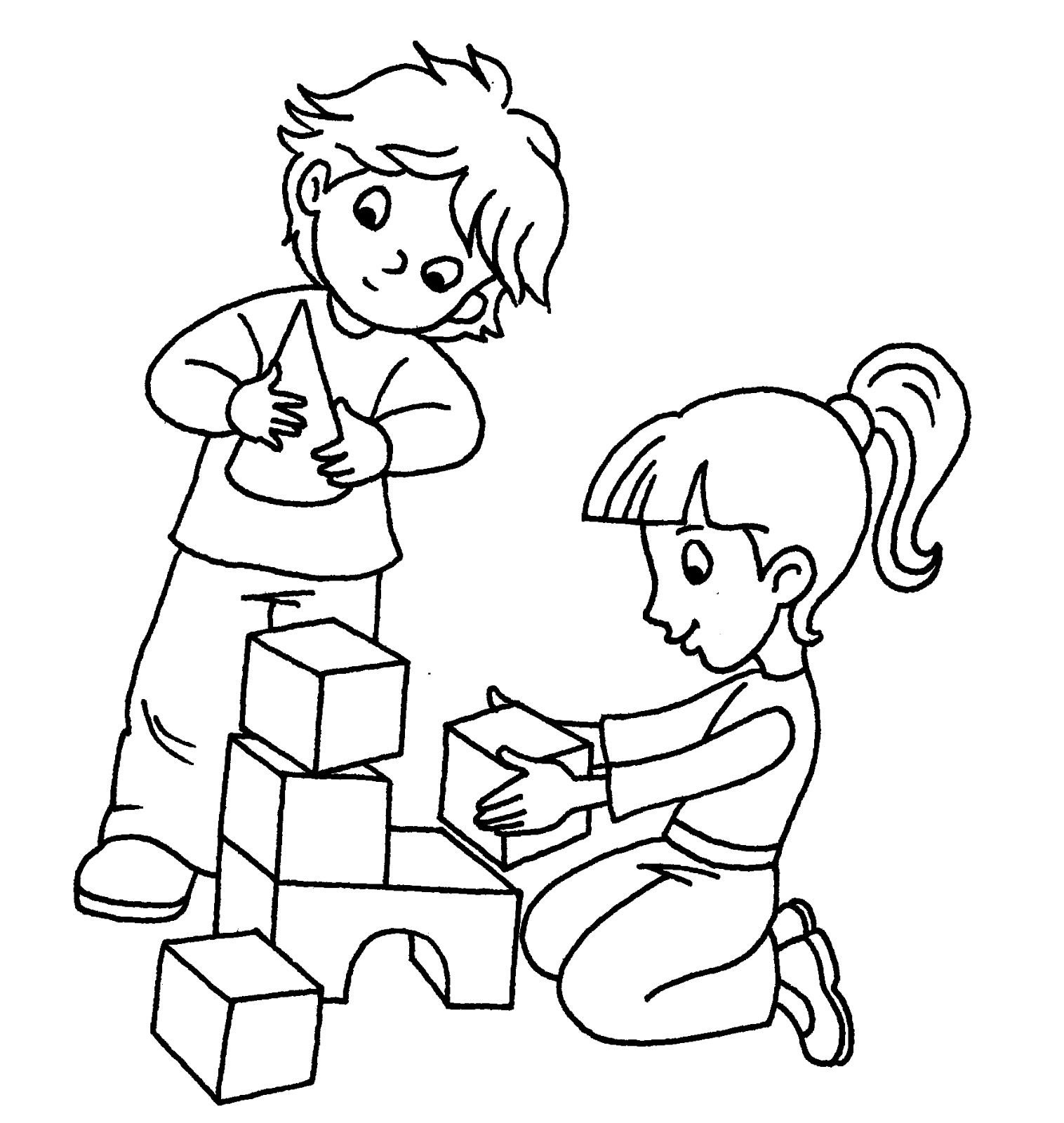 Раскраска дети играют в кубики