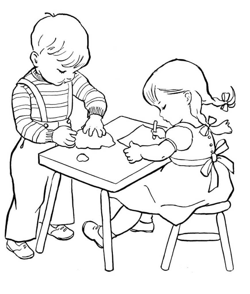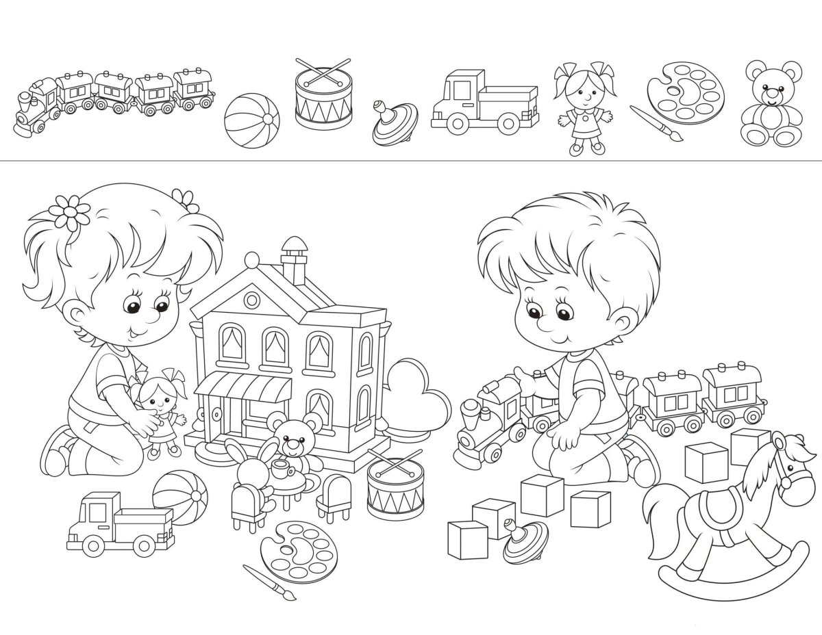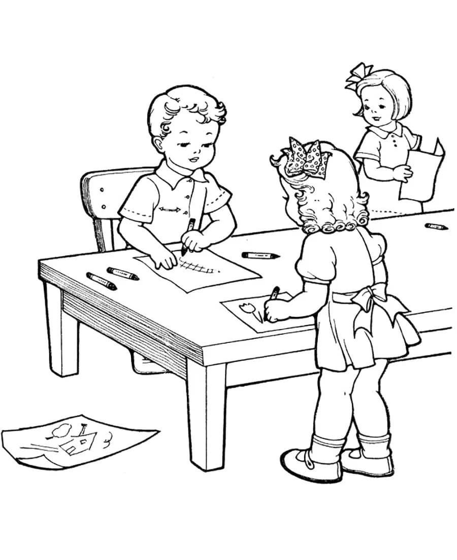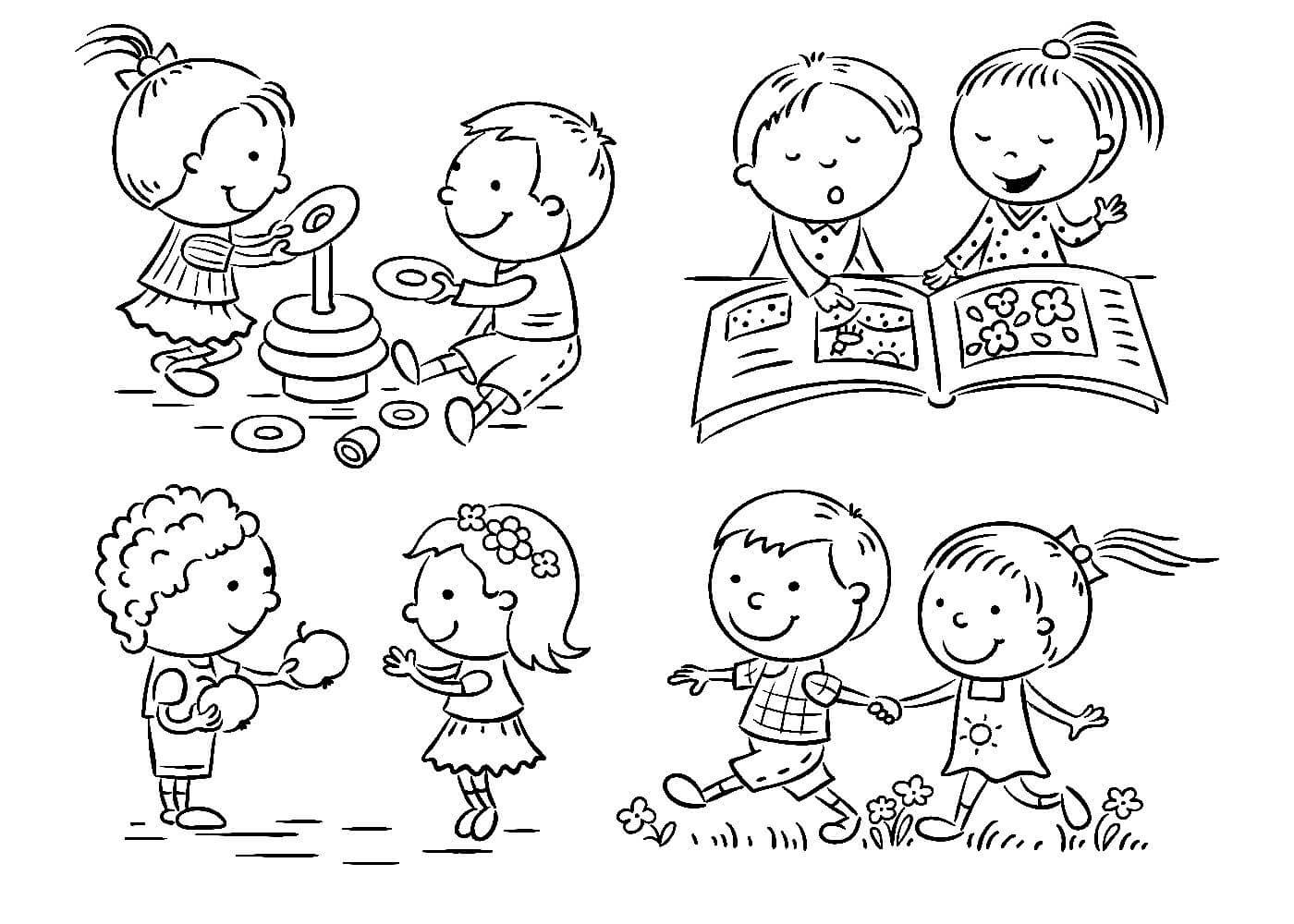 Раскраска дети в детском саду