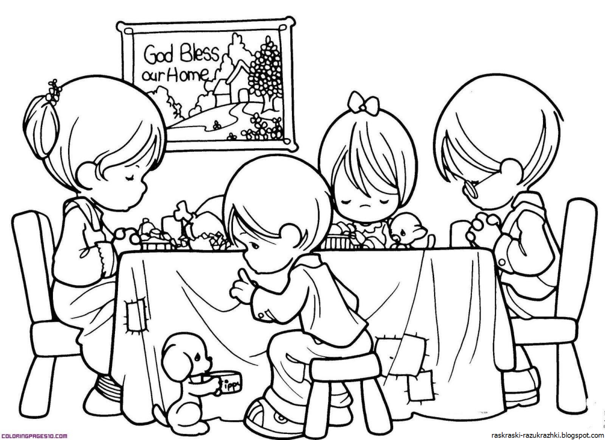 Дети в школьной столовой раскраска