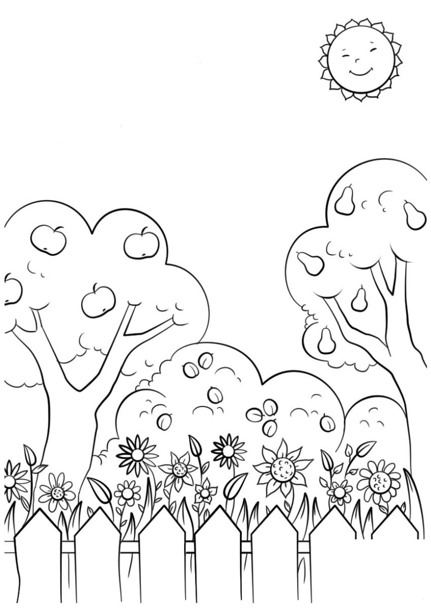 Сад раскраска для детей