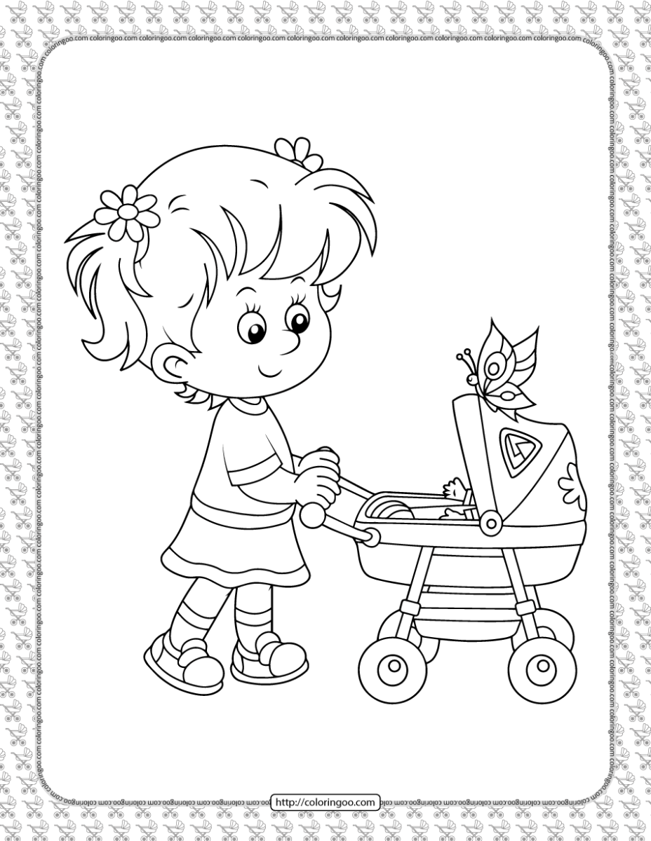 Раскраска девочка с коляской