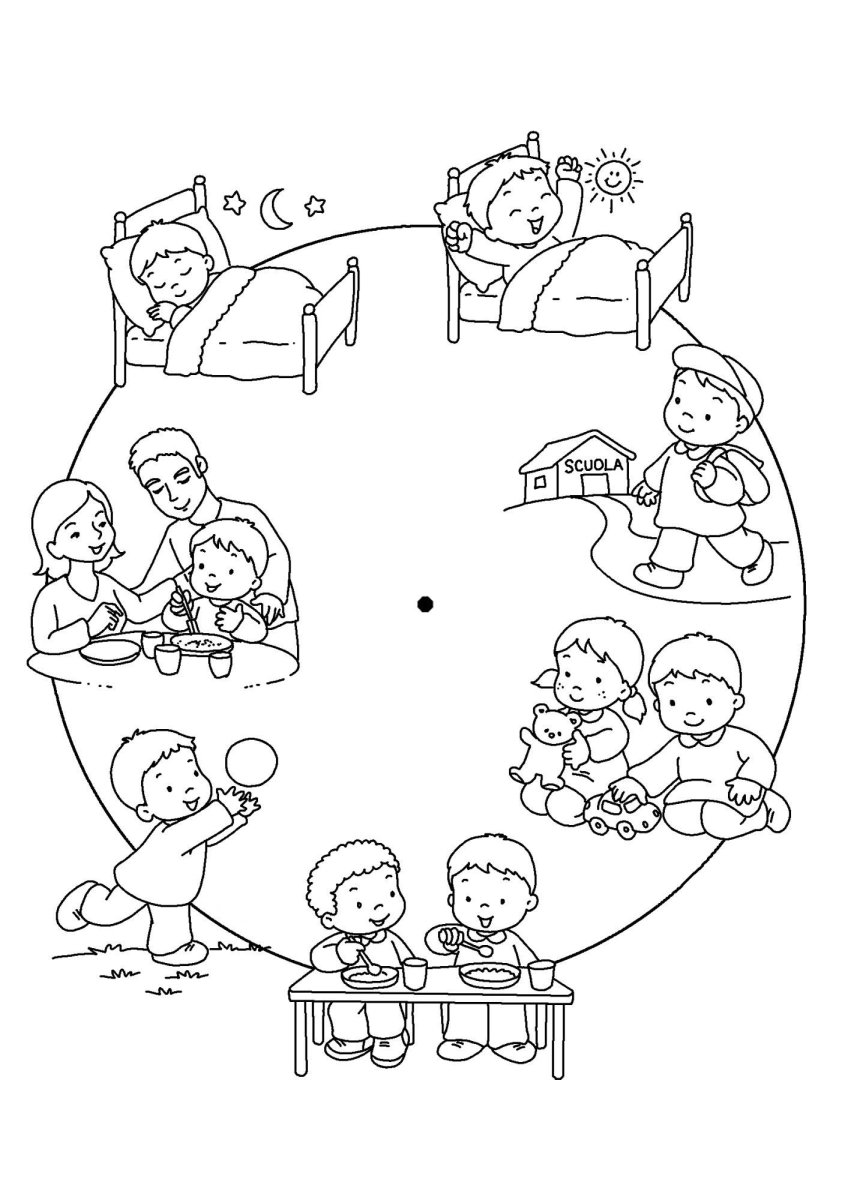 Раскраска режим дня для дошкольников