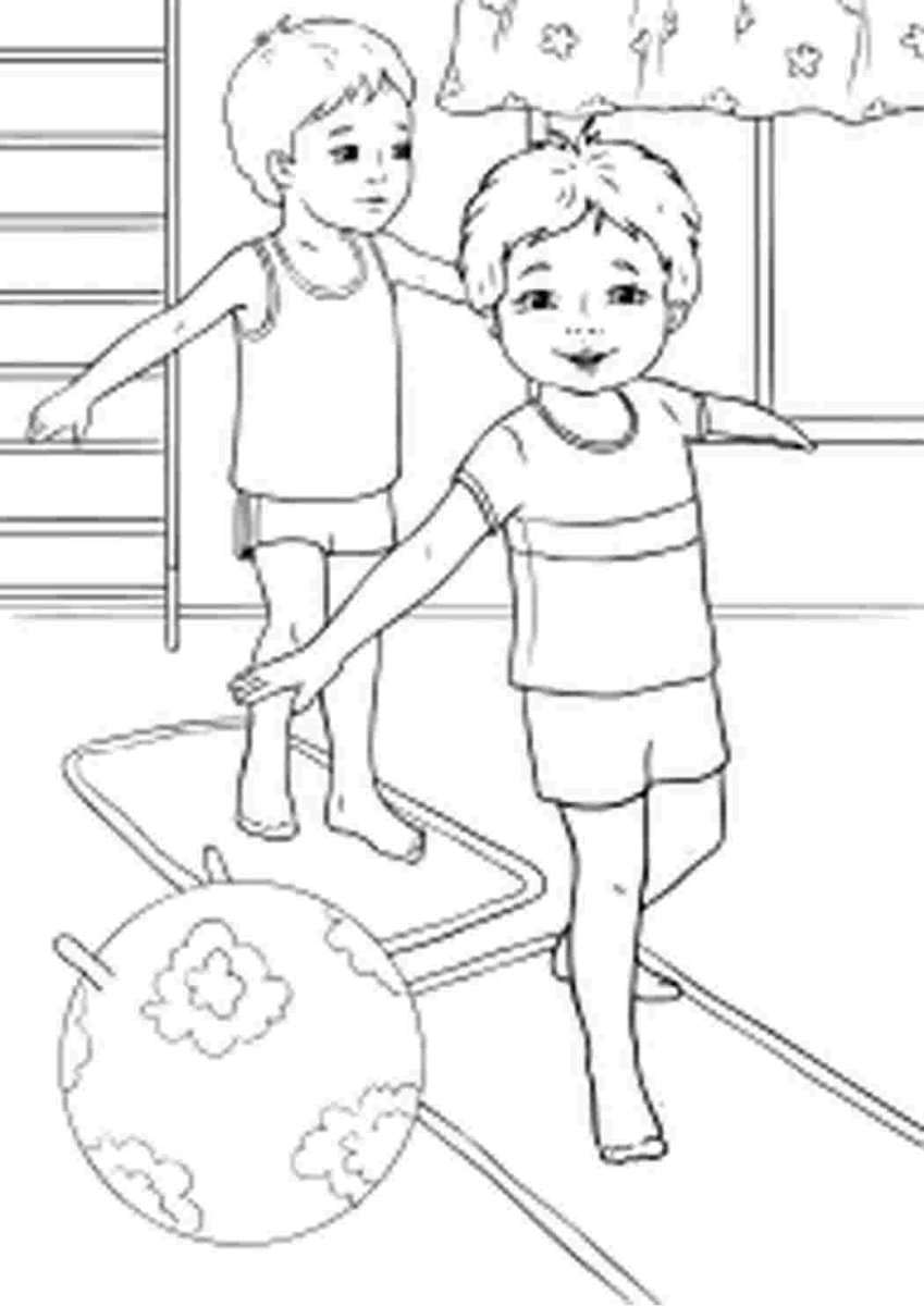 Раскраска физкультура в детском саду для детей