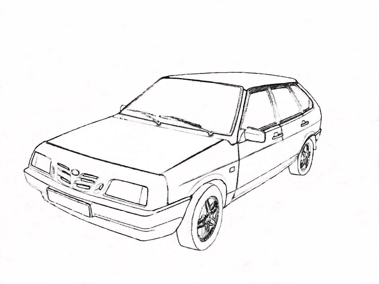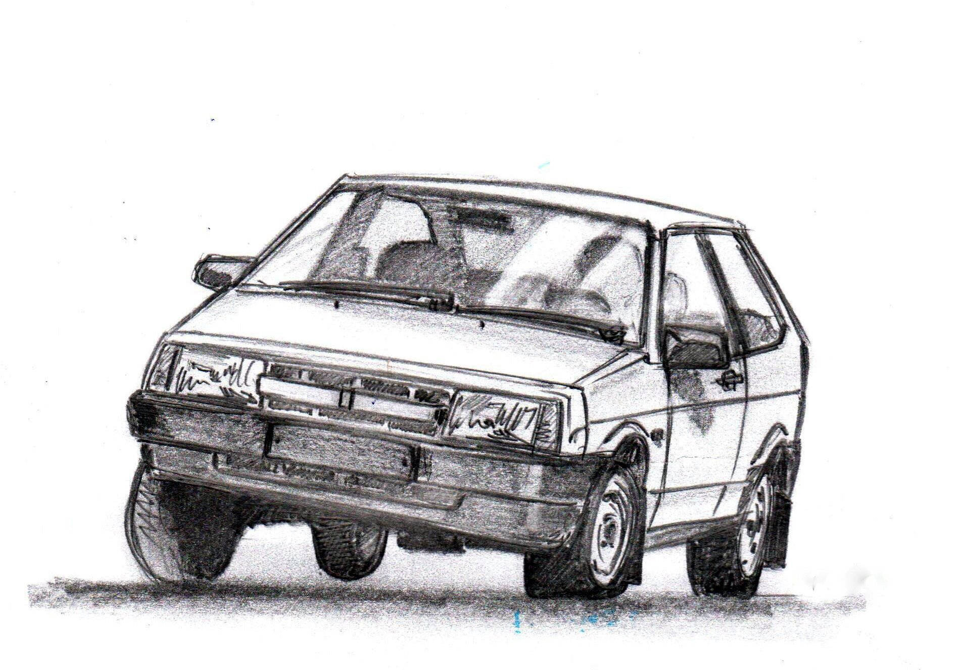 ВАЗ 2108 спереди карандашом