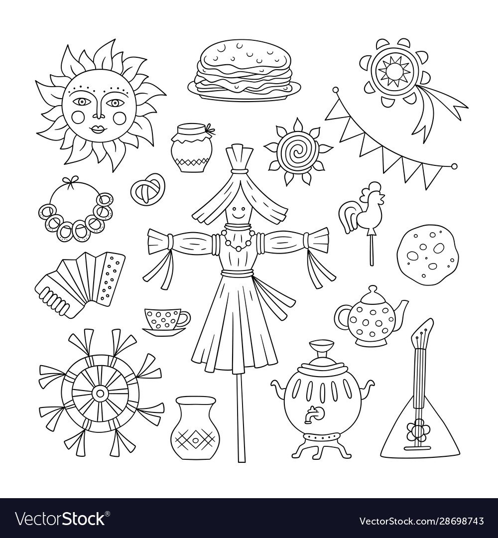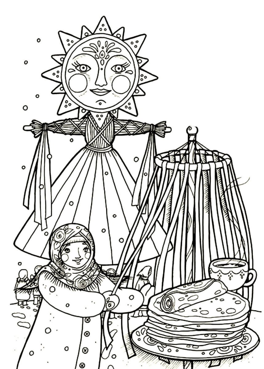 Масленица рисунок раскраска