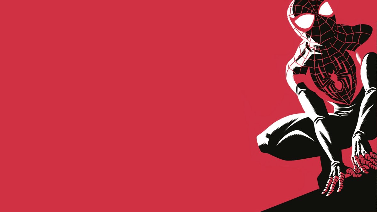 Человек паук Майлз Моралес на Красном фоне