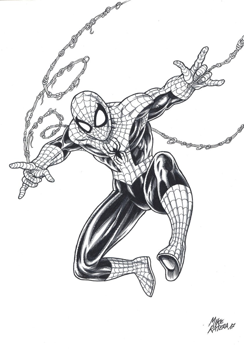 Человек паук комикс черно белый