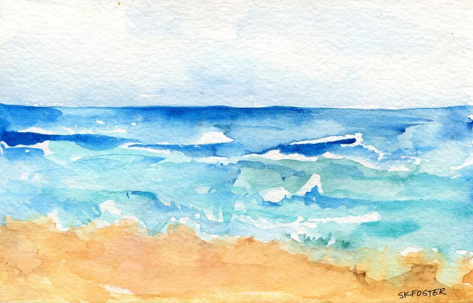 Акварельная живопись море