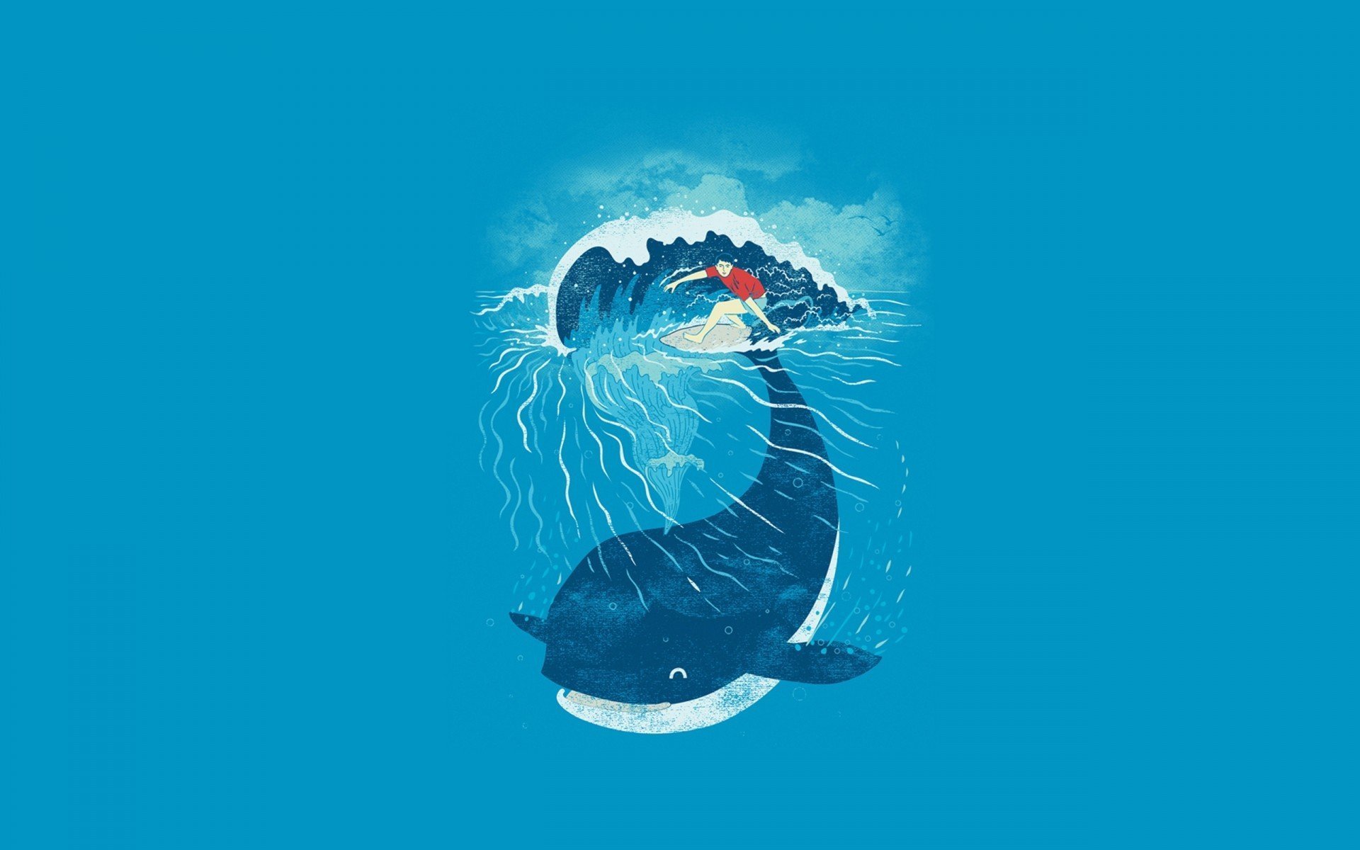 Море кит акварель
