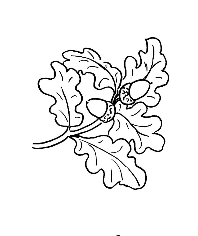 Листья дуба раскраска для малышей