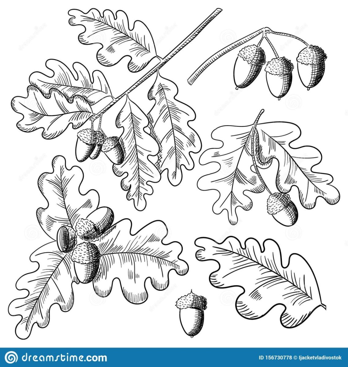 Рисунки дубовых листьев и желудей