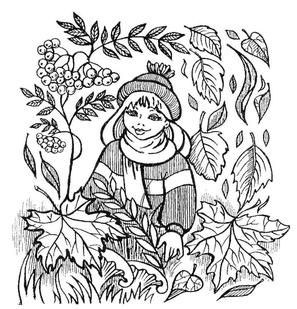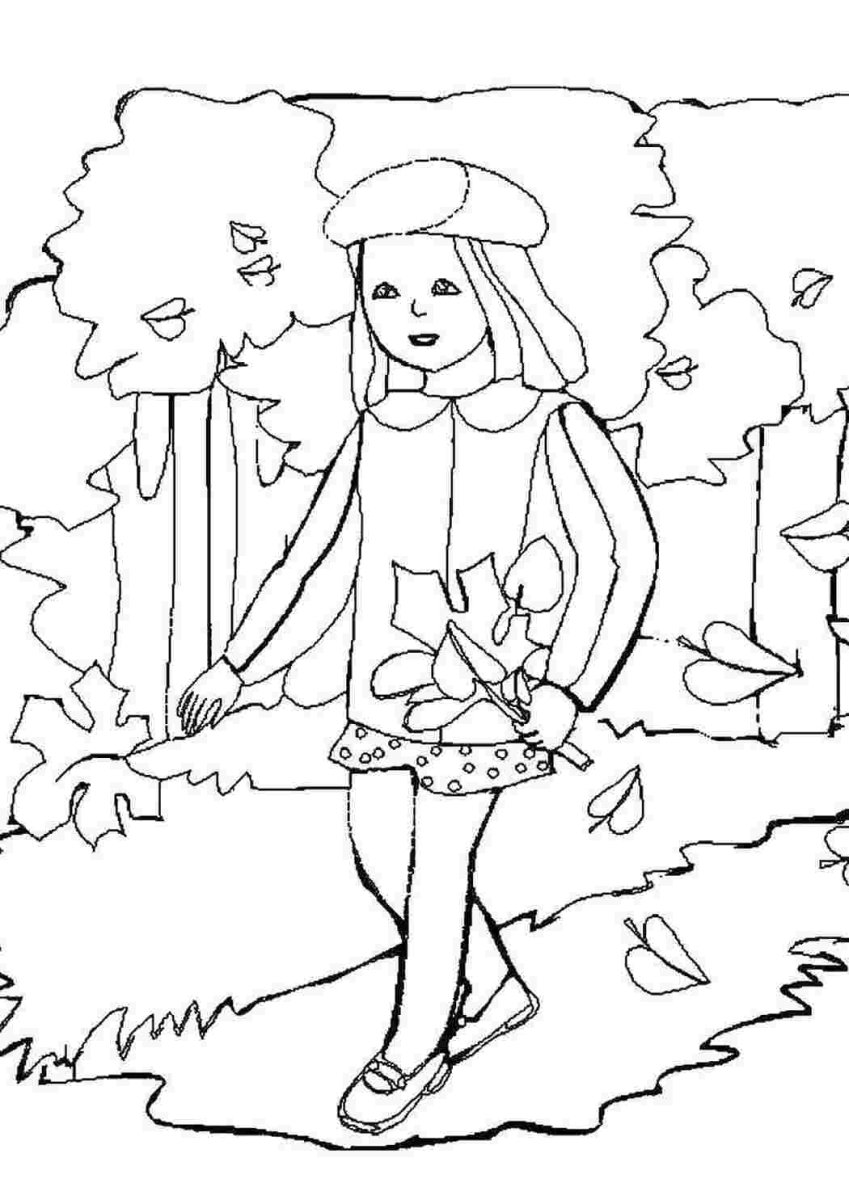 Девочка осень раскраска