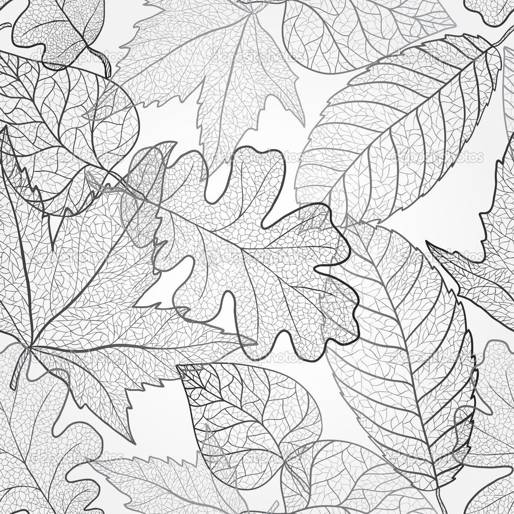Узор осенние листья черно белое