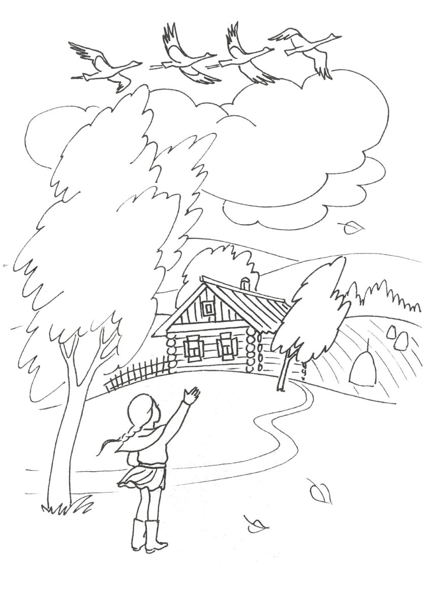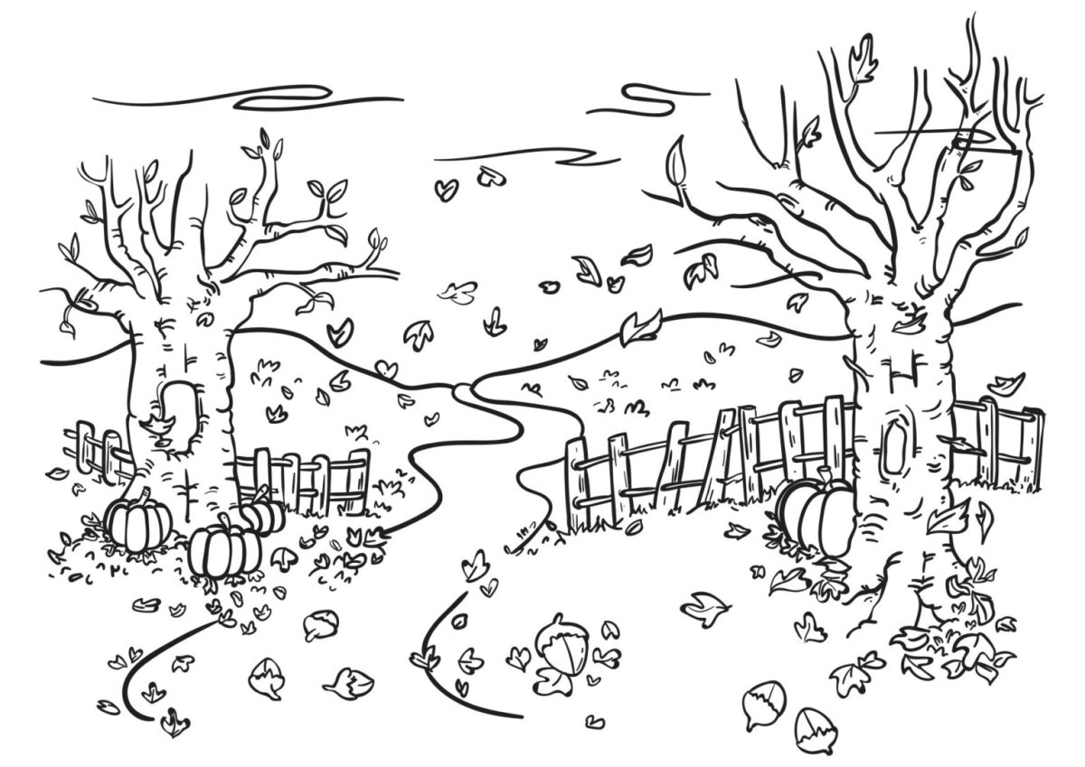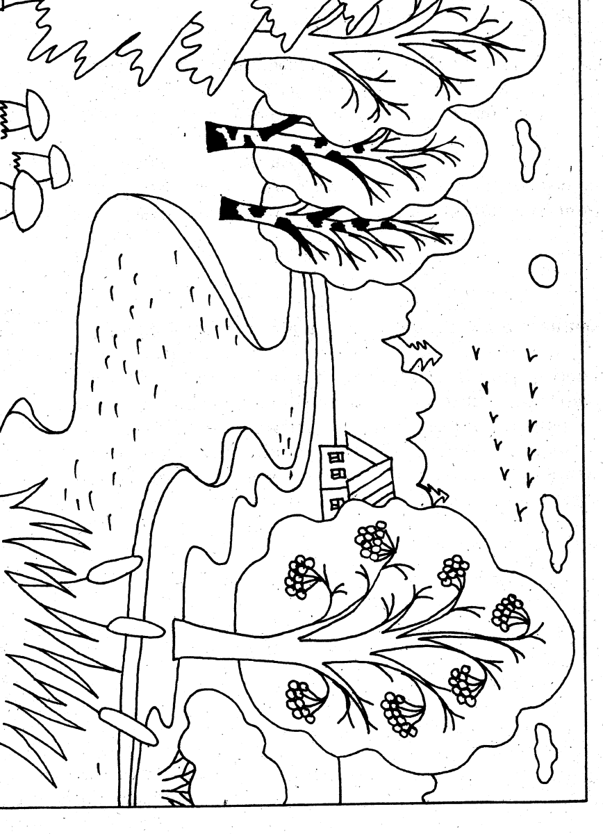 Осенний пейзаж раскраска