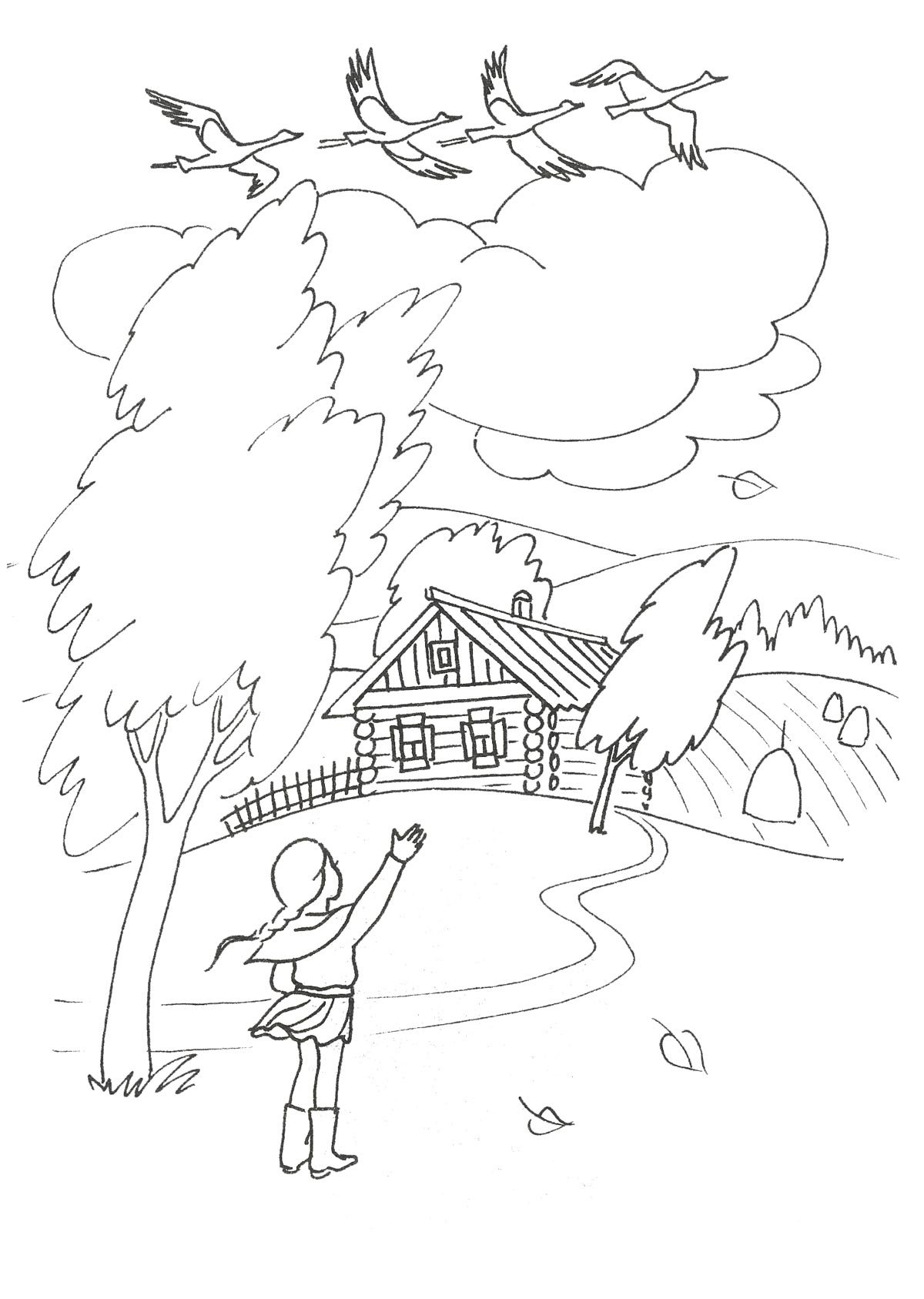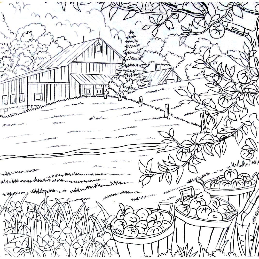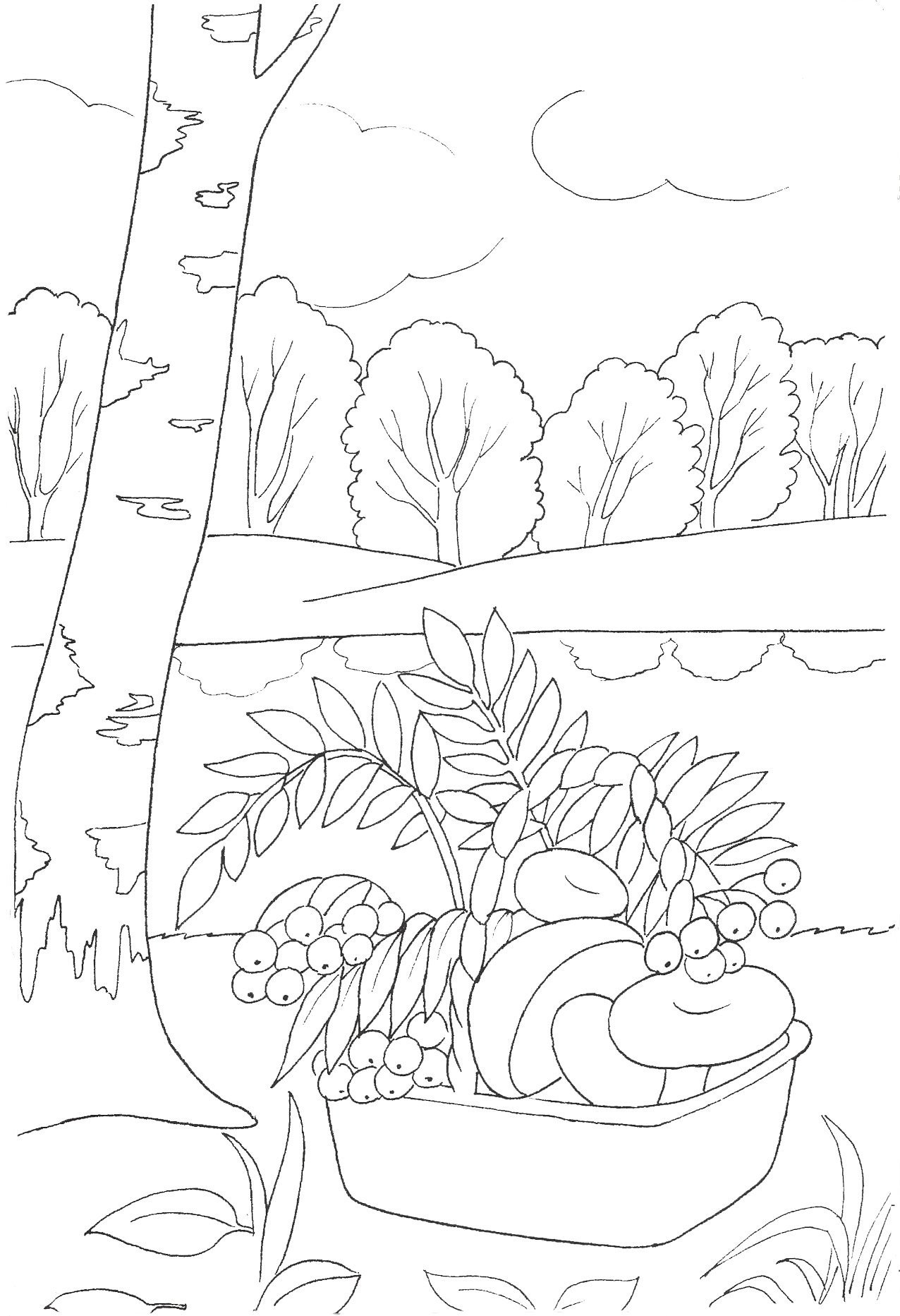 Осенний пейзаж раскраска
